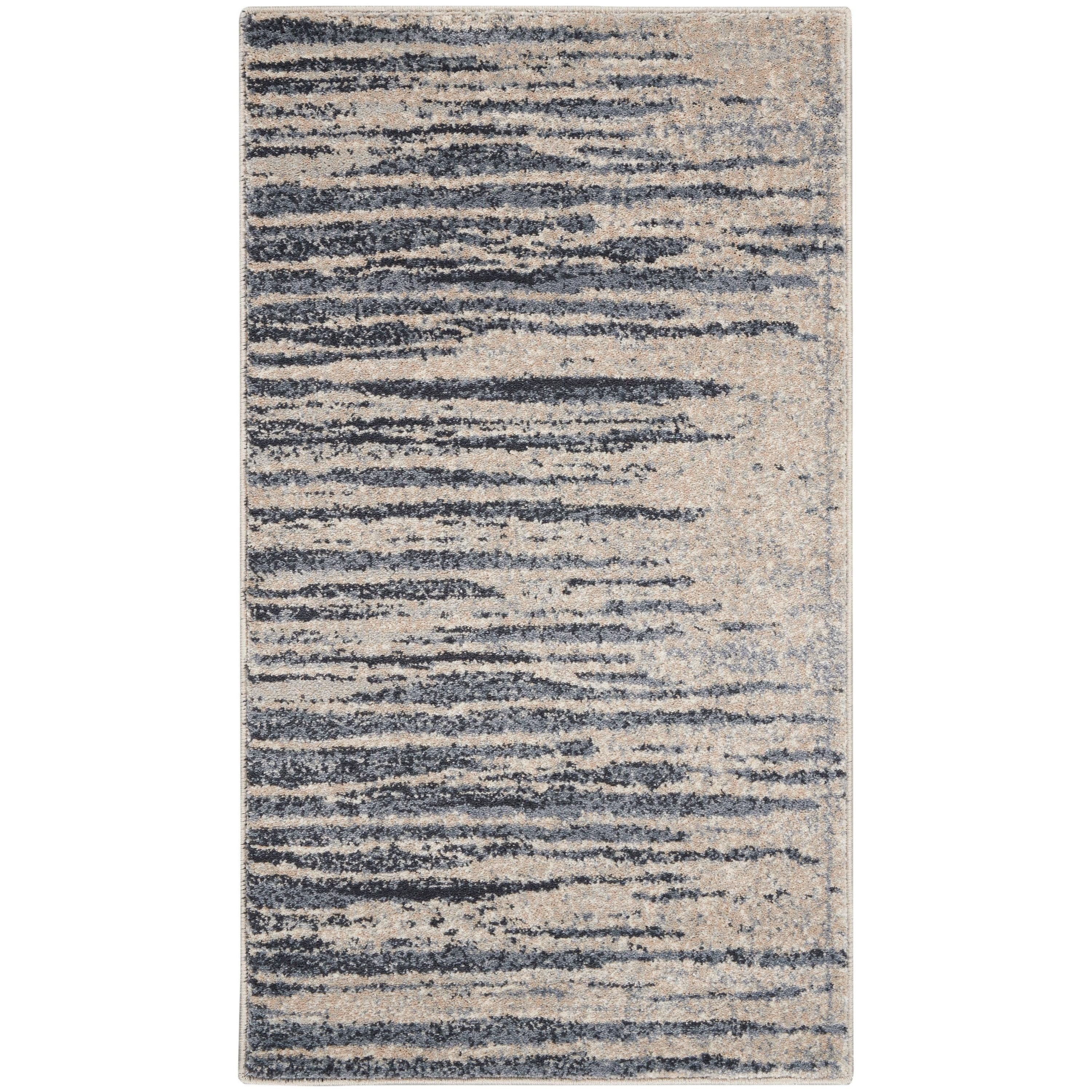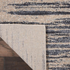 Moroccan Celebration KI387 Blue Beige rug from the kathy ireland Home Collection. This stunning rug seamlessly combines the essence of traditional Persian designs with a modern twist, featuring abstract patterns in soothing neutrals and deep blues. Crafted with durability in mind, these rugs are power loomed for easy maintenance, making them a practical yet stylish choice for any space.