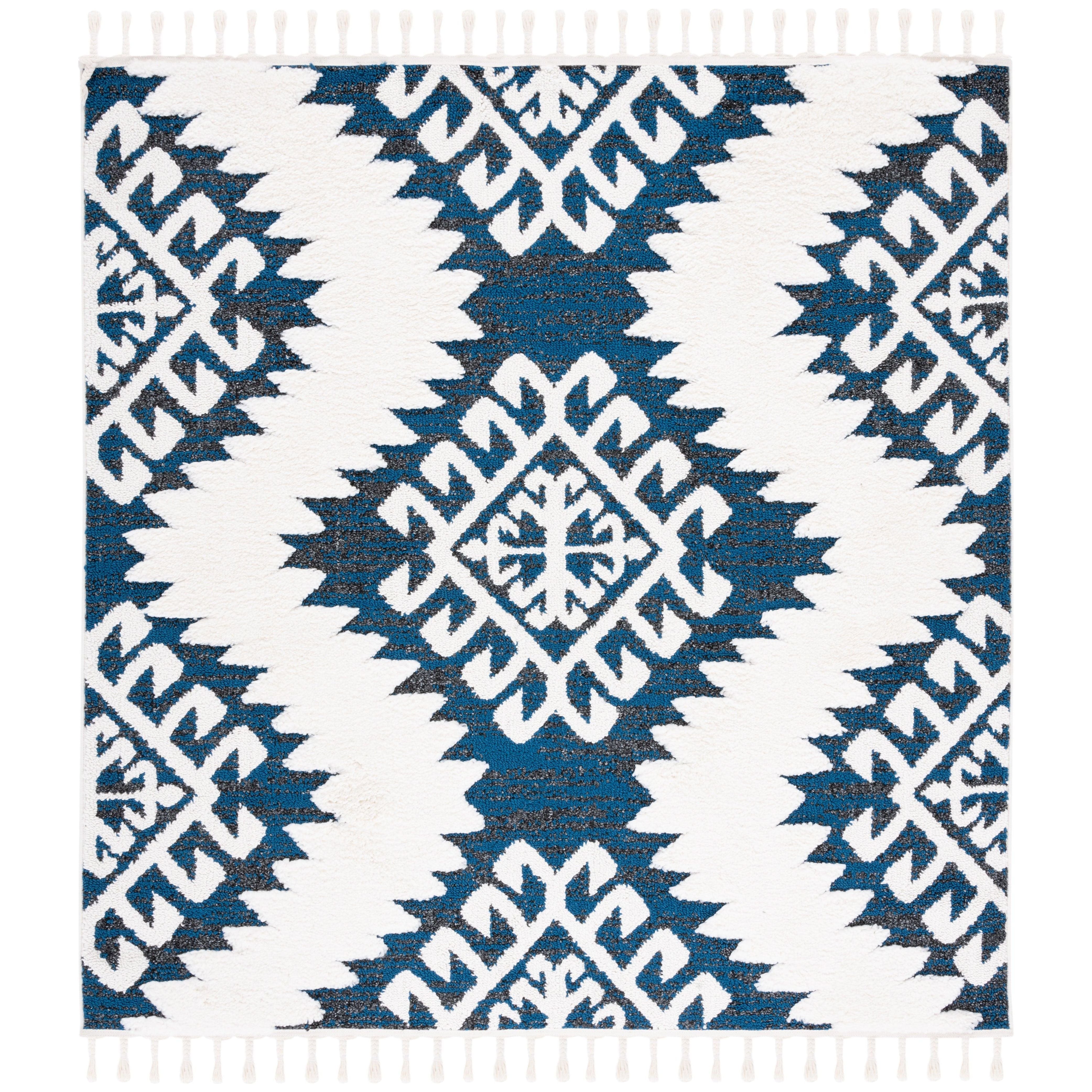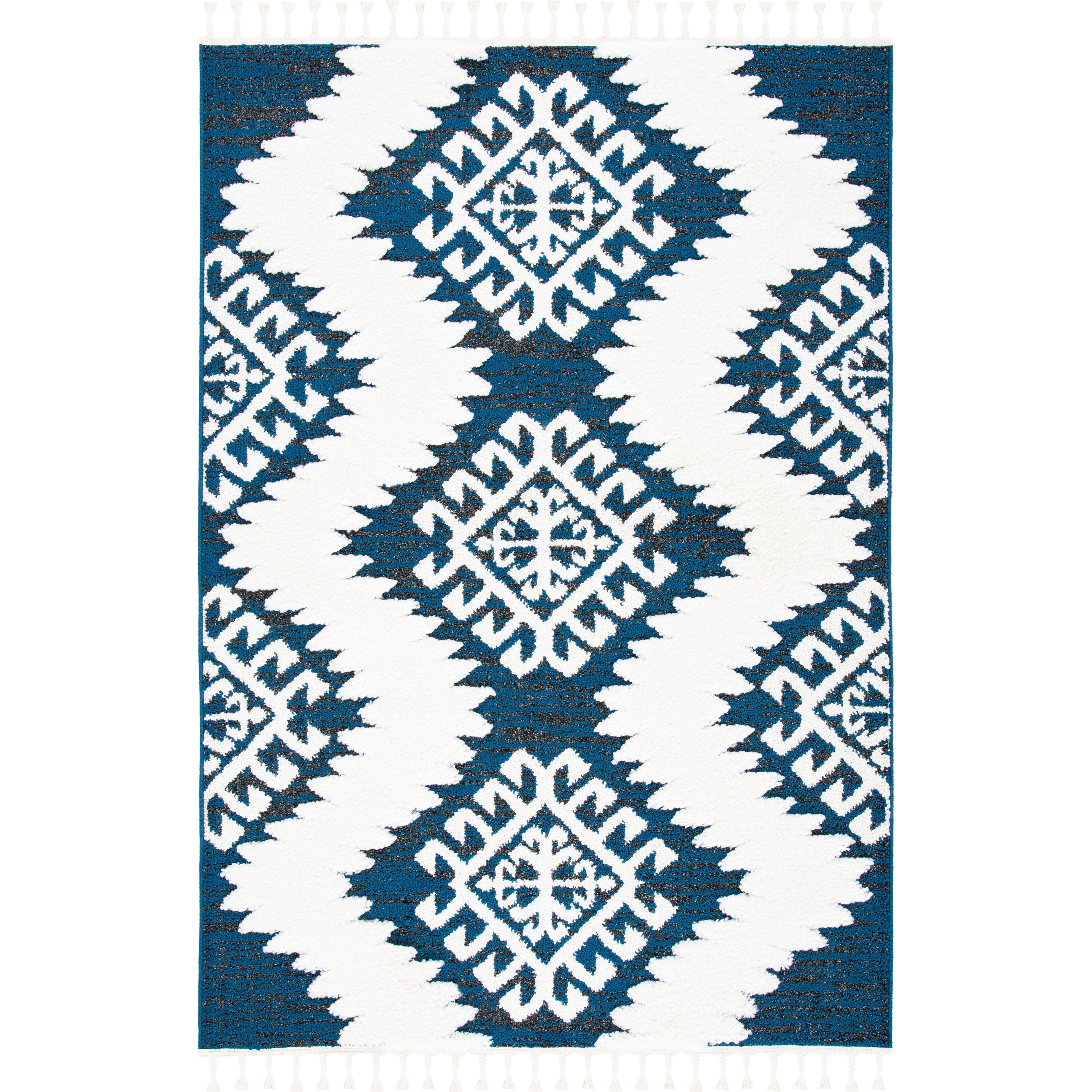 Moroccan Tassel Shag MTS652N, a rug that exudes Old World charm with its intricate diamond designs and luxurious textures. Part of SAFAVIEH's Moroccan Tassel collection, these shag rugs bring a touch of nomadic flair to modern rustic-chic interiors. The braided fringe adds a whimsical element, making these floor coverings a must-have for any space.