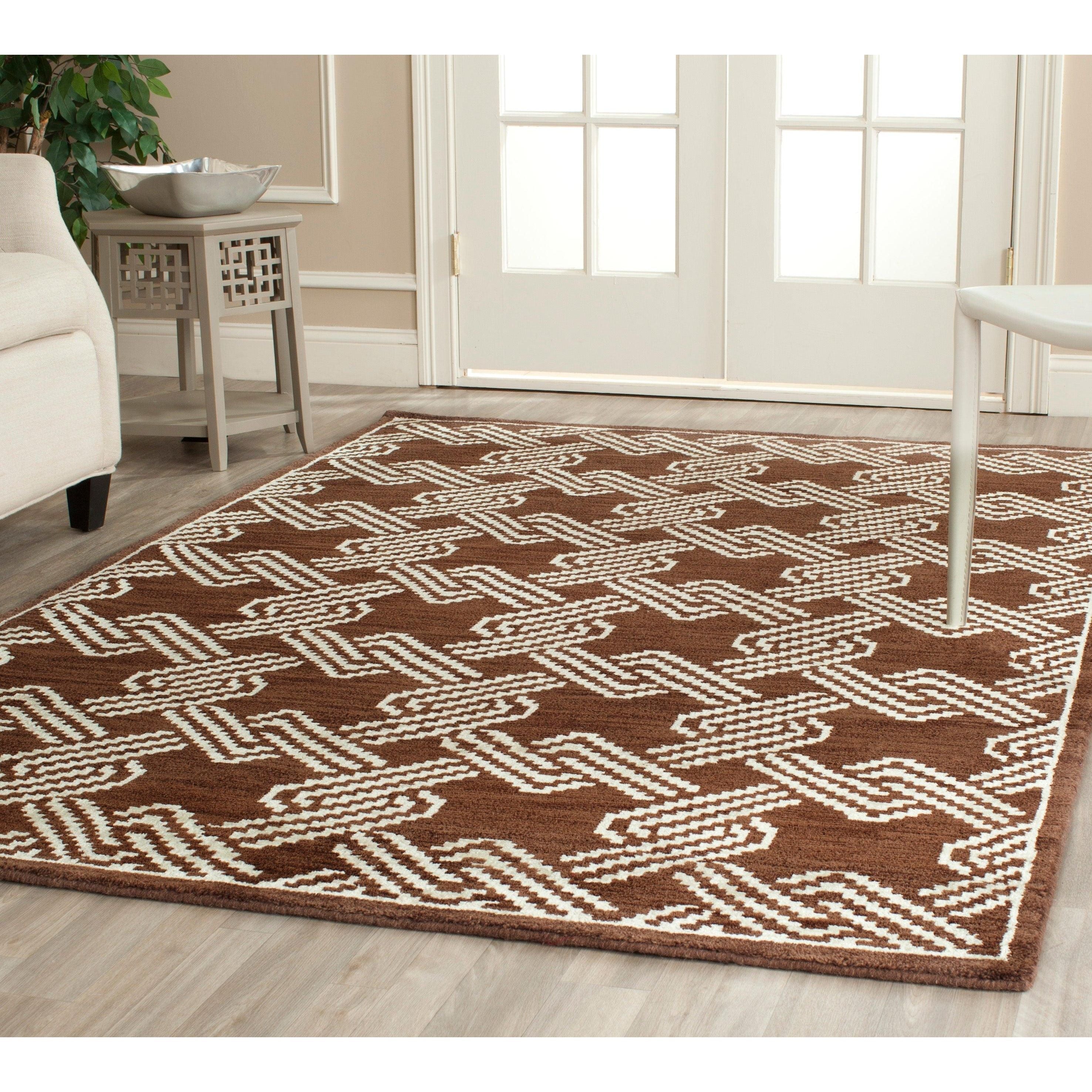 Discover a touch of elegance with the Mosaic MOS156A rug from SAFAVIEH. Inspired by the intricate tile designs of North Africa and Mediterranean artisans, this collection features a blend of timeless patterns, from lattice to the classic Greek Key. Hand-knotted in India using wool and organic viscose accents, these rugs are perfect for any room, whether it's transitional or contemporary in style. With a thickness of approximately 0.5 inches, the Mosaic rug adds both comfort and style to your space.
