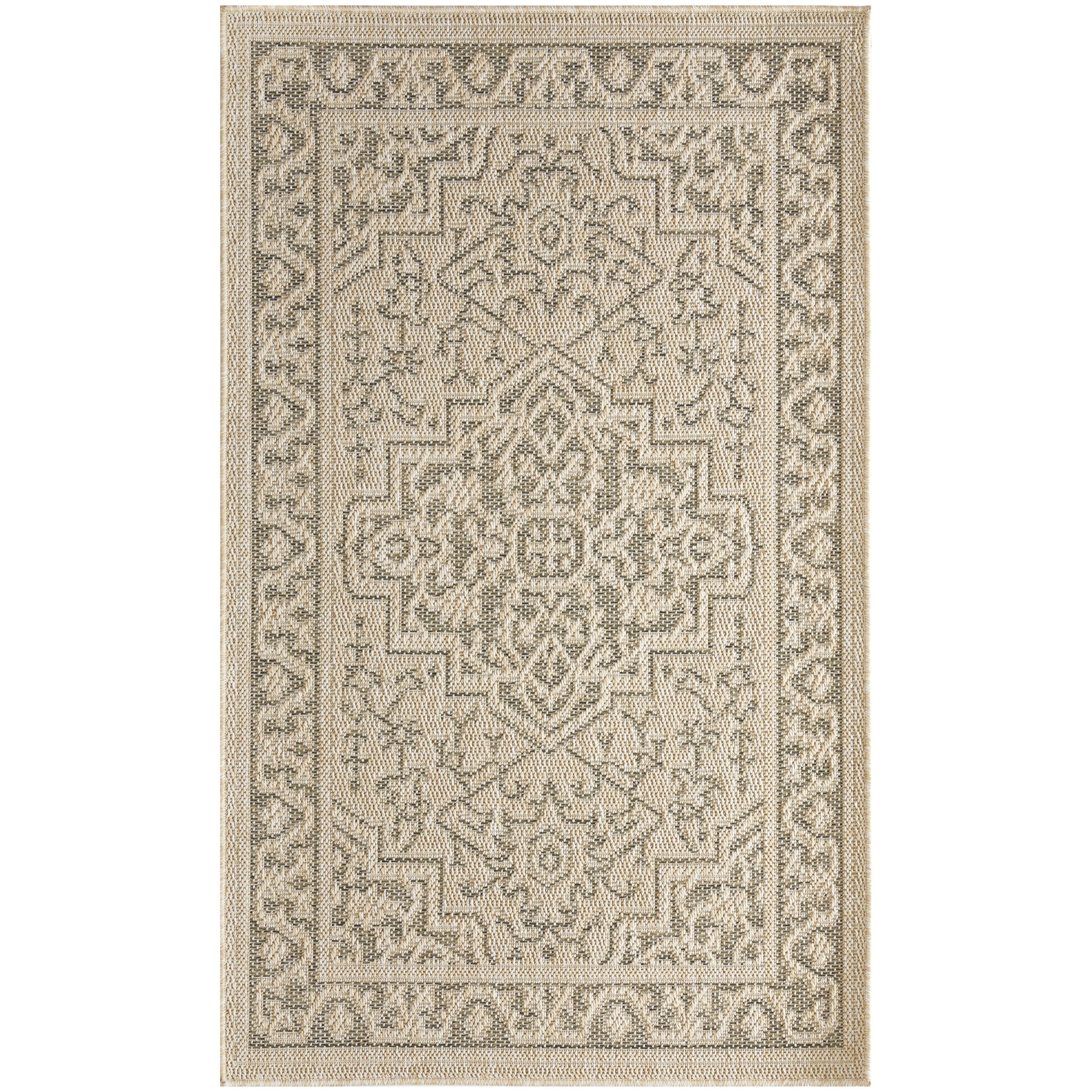 This taupe and olive-green outdoor rug from the Tulum collection brings timeless style with a modern twist to indoor and outdoor spaces alike. The flatweave construction has a substantial feel, while the rich colors and tonal variations create a visually engaging look. This transitional rug is made from polypropylene for easy cleaning, making it ideal for a variety of spaces including the living room, bathroom, balcony, kitchen, and patio.