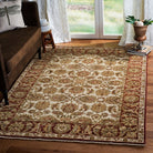 exquisite Old World OW115G Ivory Rust rug, a timeless piece inspired by 19th Century Agra designs. Crafted with a unique hand-spun heathered yarn, each rug in the Old World Collection exudes an aura of heritage and sophistication. The meticulous weaving process results in a dense, luxurious pile that promises both durability and comfort.