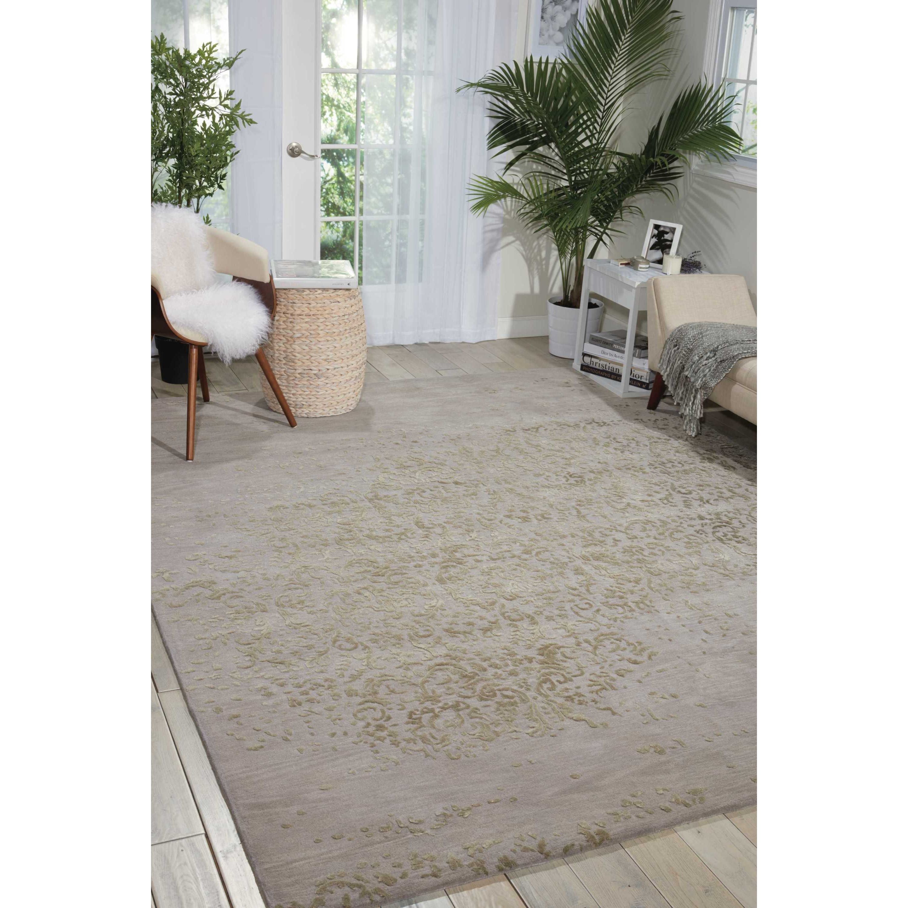 Opaline OPA08 Silver, a stunning addition to Nourison's Opaline Collection. These exquisite area rugs seamlessly blend old-world charm with modern design elements, creating a unique and inviting atmosphere for any room. Hand-tufted with meticulous attention to detail, each rug boasts a gently faded appearance that adds a touch of vintage allure to your space.