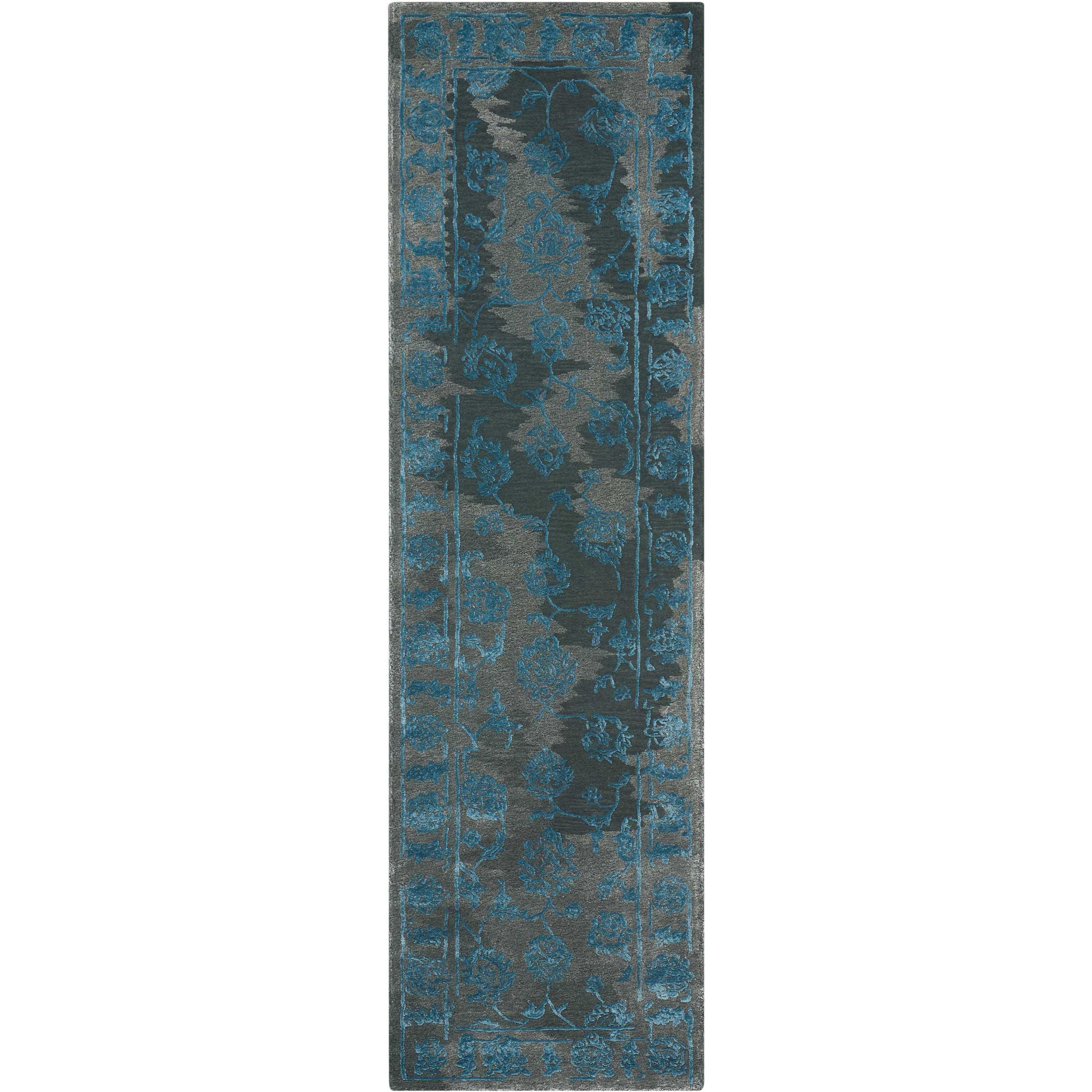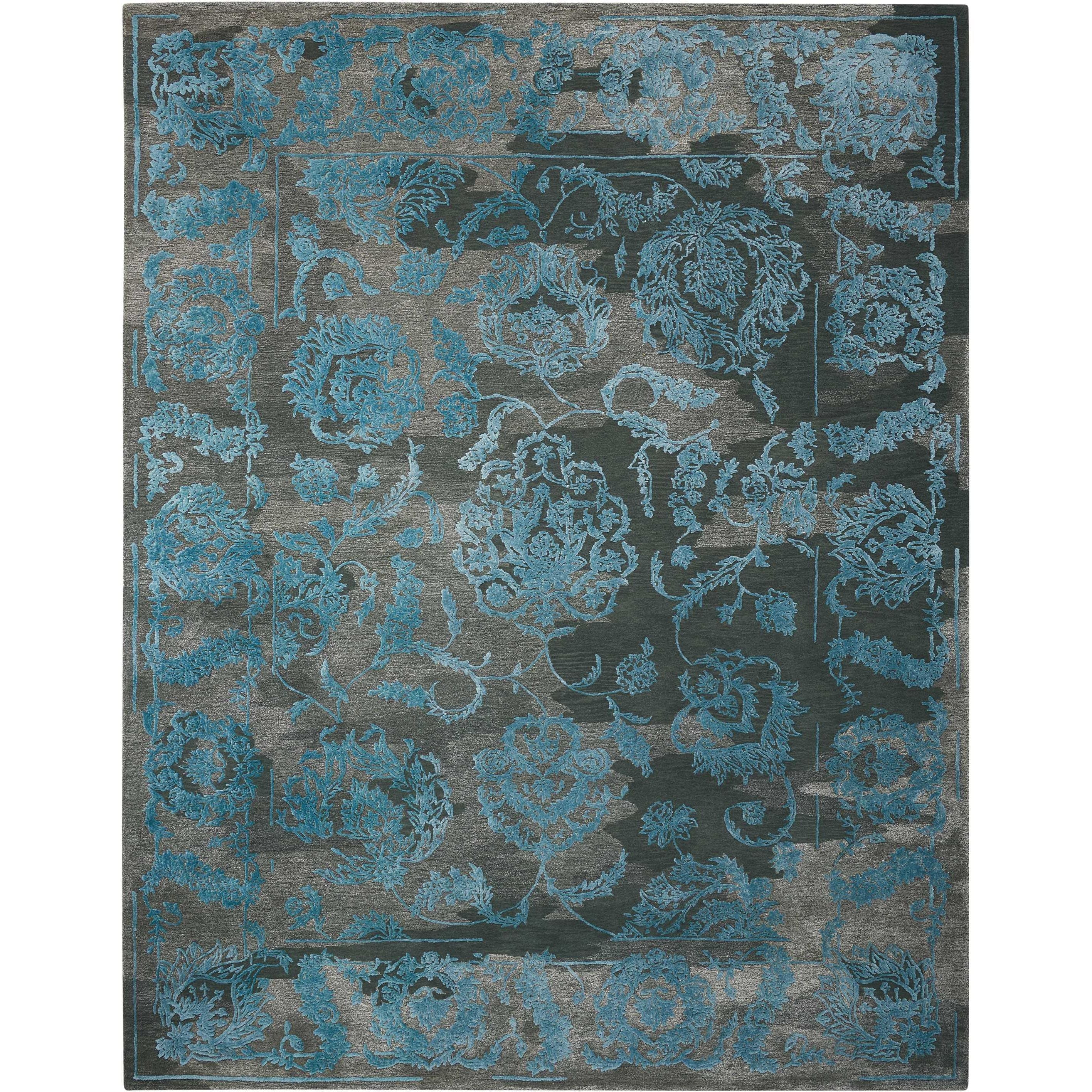 Opaline OPA12 Charcoal Blue, a stunning addition to Nourison's Opaline Collection. This exquisite area rug combines the charm of Old World design with modern craftsmanship for a timeless appeal. Hand-tufted with meticulous attention to detail, the rug boasts a gently faded appearance that adds character to any space.