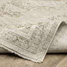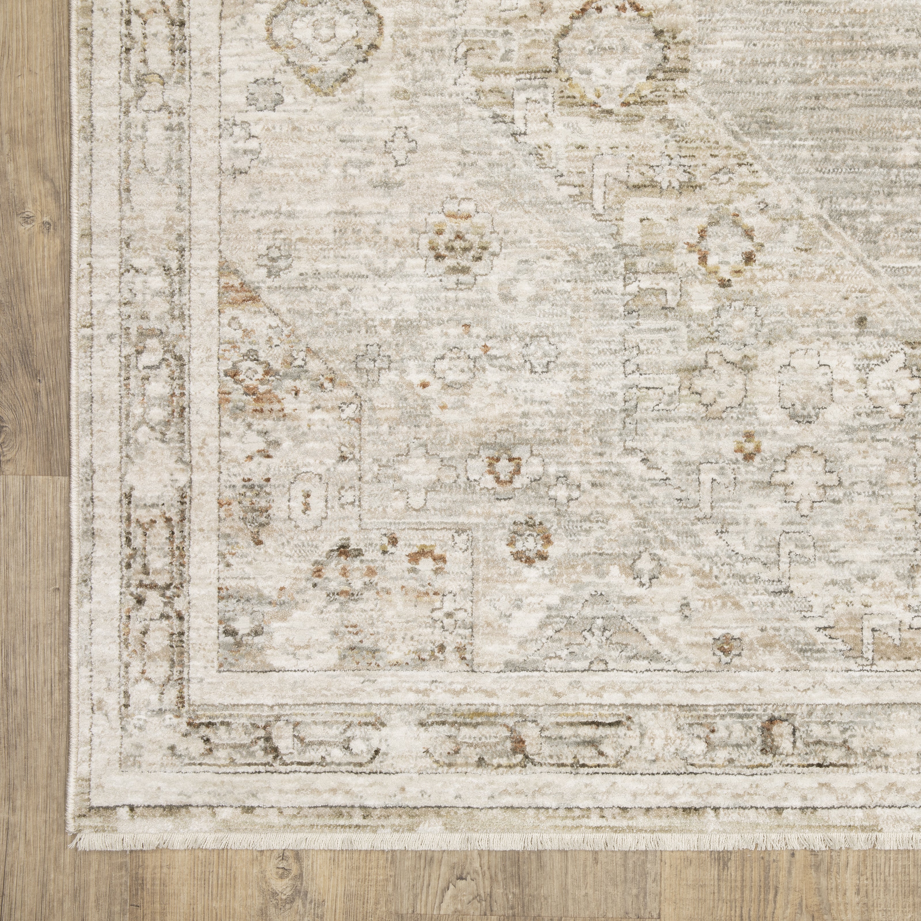 The Avalon collection features beautifully detailed traditional designs in a subtle color palette of warm neutrals with accents of watery blues, golden terracotta tones and touches of mossy green. It is constructed of incredibly soft space-dyed polyester giving the collection a nice hand as well as a look of modern neutrality and textural appeal. (Fringe is not included on the 2'7"x7'7" runner nor the 3'2"x 5' accent rug size.)