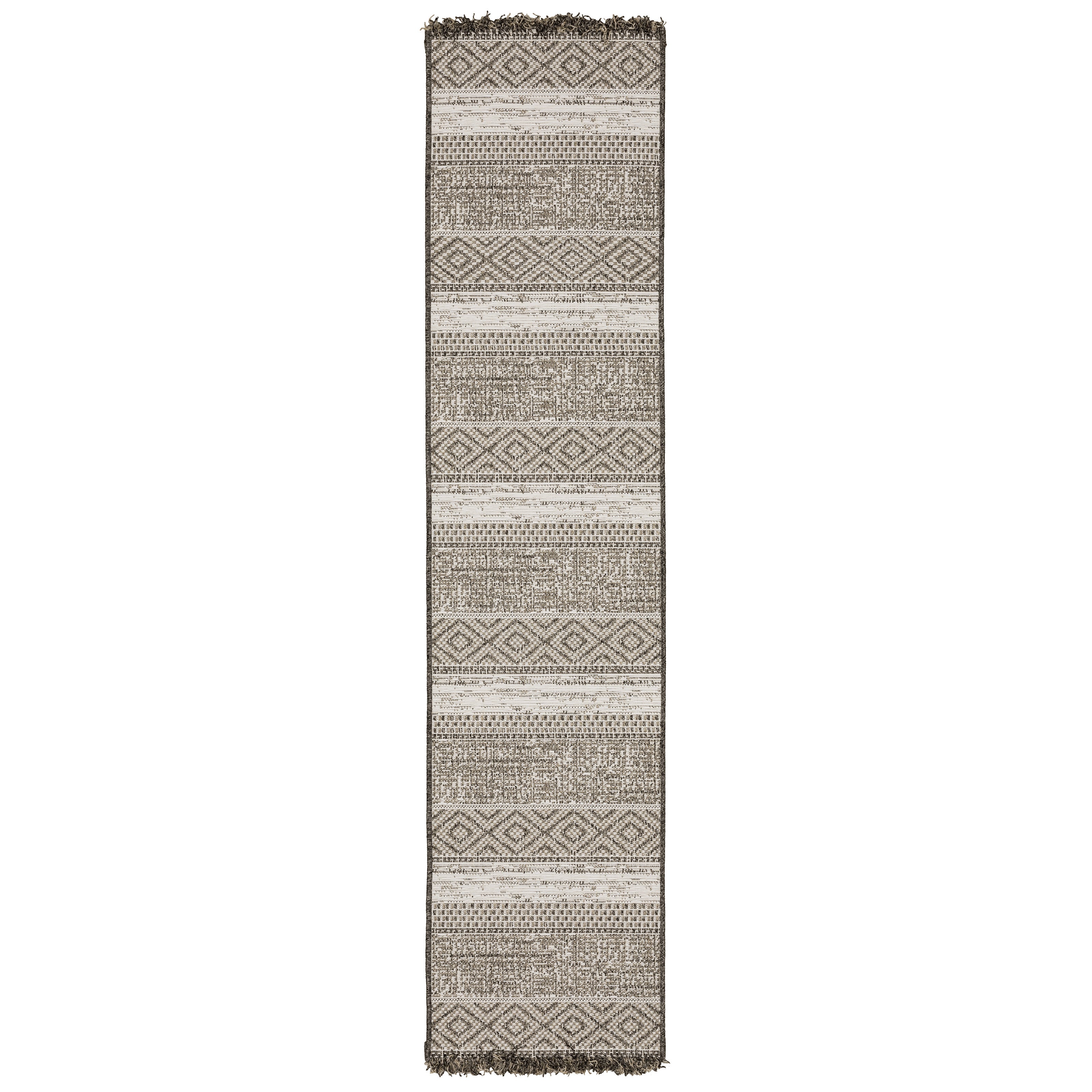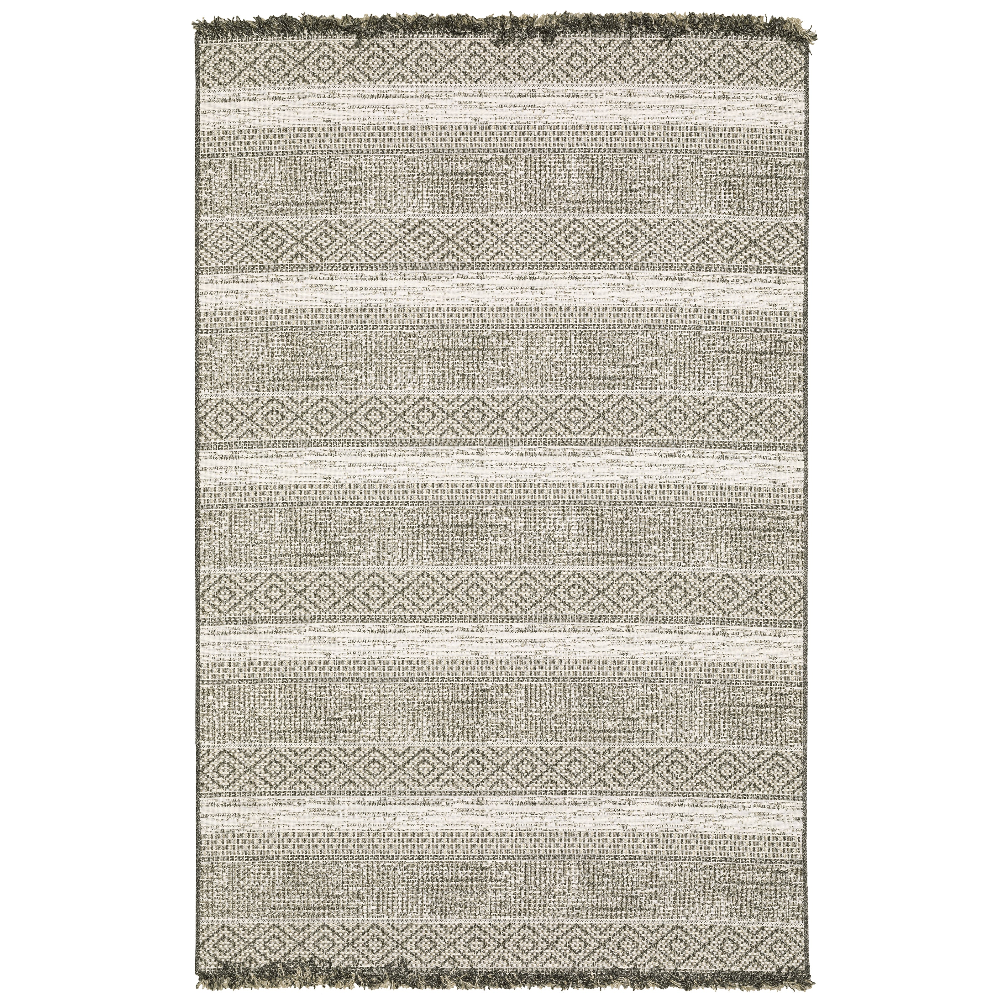 The Gillian collection features subtle patterns and textures with a global feel in tonal colorations of gray, ivory and black. Power-loomed of 100% polypropylene, Gillians flatwoven construction with incorporated fringe, adds visual interest to your floor. Gillian is an ultimate performance collection that is perfect for high-traffic areas and living spaces due to its easy care and family friendly properties.