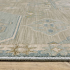 The Maeve collection features subtly pigmented color palette features neutral tones of ash brown, oat milk and sustained gray as well as mineral-based blues, matcha green, sunbaked clay and antique gold. The quietly modern color palette gives fresh appeal to traditional Persian and block print patterns with a touch of bohemian flair. It is power-loomed of super-soft, space-dyed polypropylene.