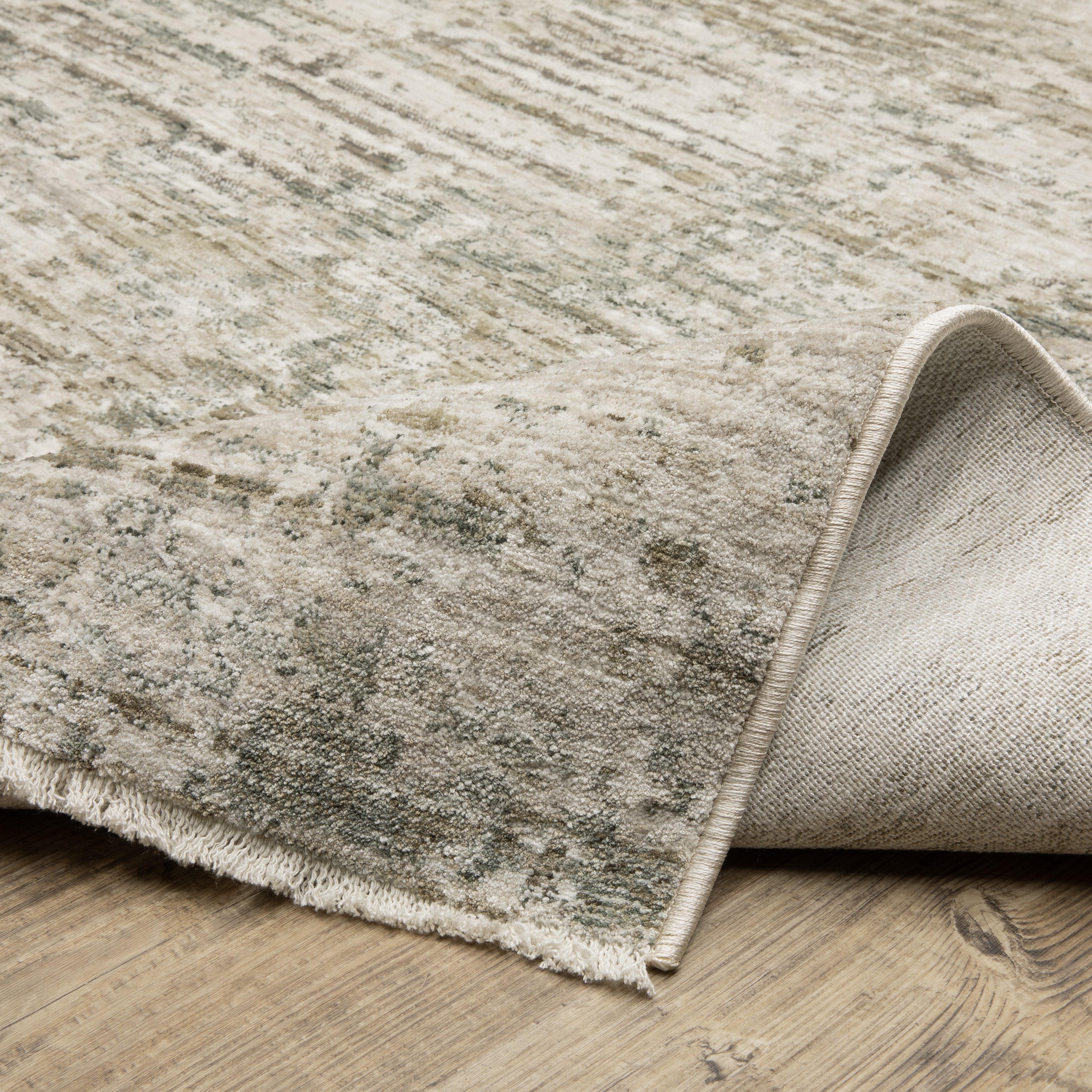The Soho collection is machine-woven of incredibly soft, space-dyed polyester yarns. It features organic abstract and modern casual designs in a subtly colorful palette of warm neutrals, watery blues, golden terracotta tones and touches of mossy green. (Fringe is not included on the 27x77 runner nor the 32x5 accent rug size.)