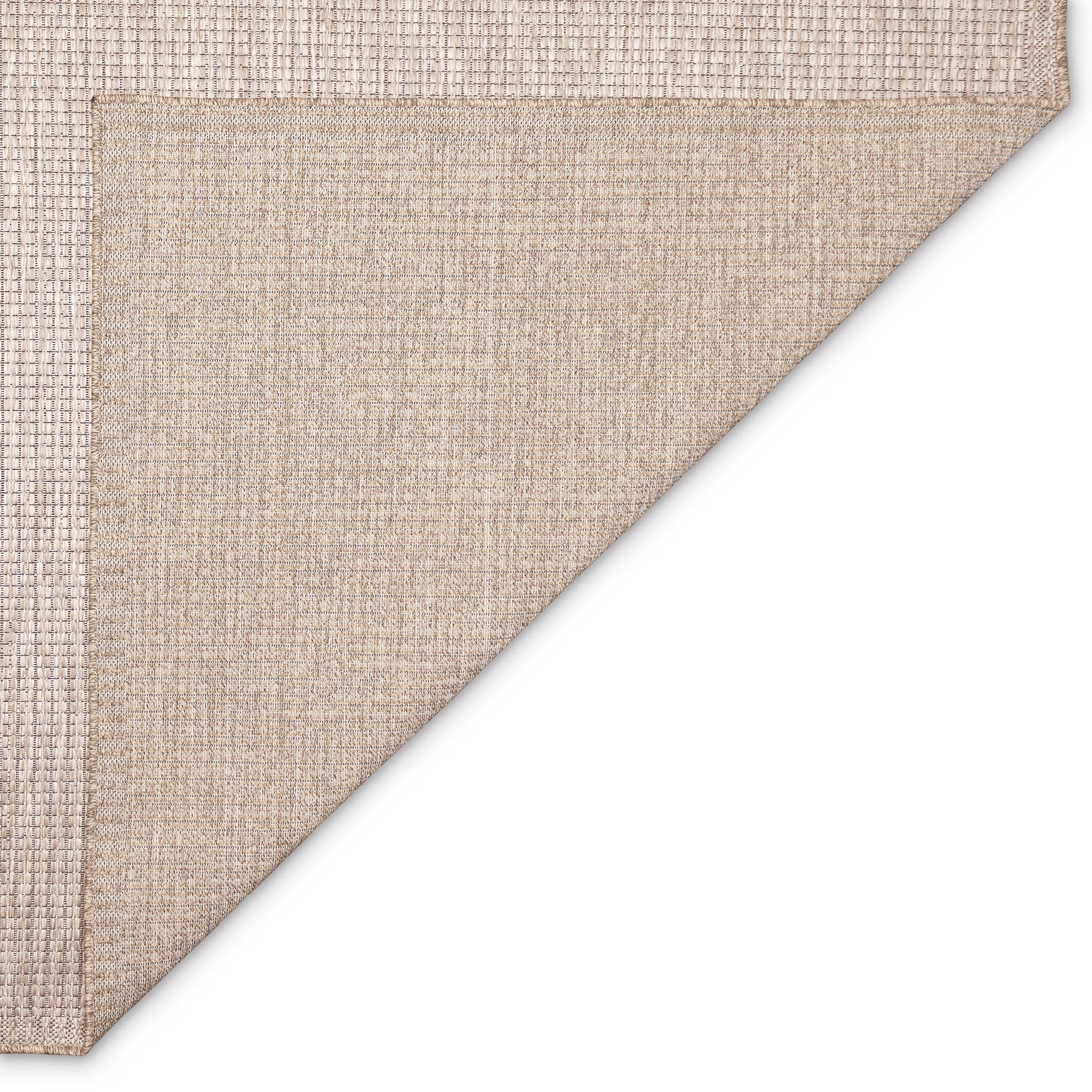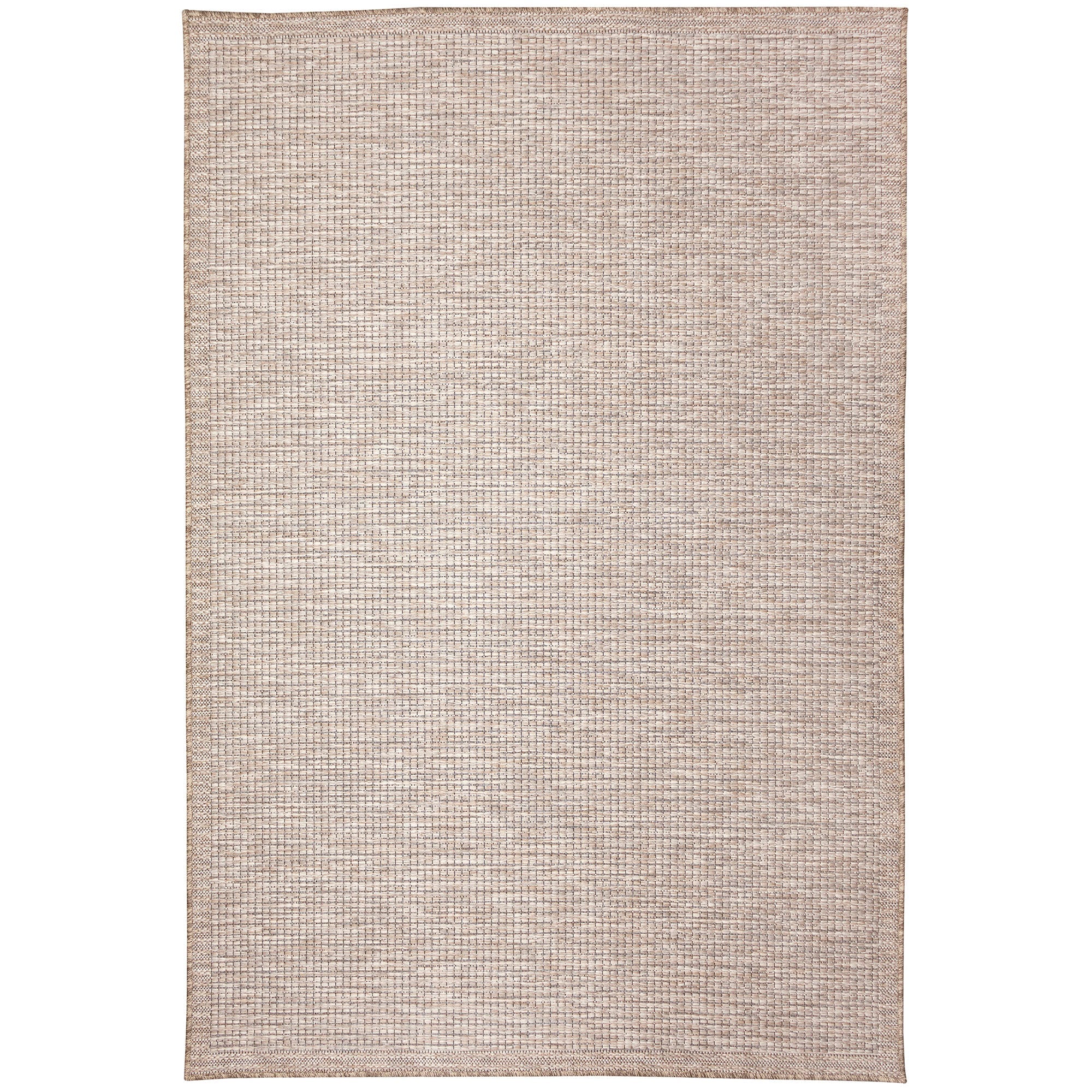 Orly Texture Natural rug, a versatile piece that brings a rustic charm to any indoor or outdoor space. Crafted in Egypt from 100% polypropylene, this rug showcases a basketweave pattern center with a striped border for a unique textural look. The Orly Collection offers a mix of textures including braids, twills, crosshatch, and boucle in natural tones, creating intricate designs with a high-quality finish.