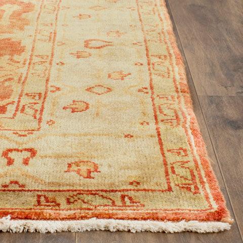 Oushak OSH119A Rust Ivory area rug, a timeless piece that captures the enduring elegance of traditional Turkish rugs. The Oushak Collection beautifully preserves the renowned designs and dappled shading (abrash) that are characteristic of authentic Oushak carpets. Each rug in this exemplary collection is meticulously hand-knotted using 100% pure wool, ensuring both quality and durability. These striking renditions are thoughtfully crafted to bring a touch of traditional style to modern classic home decor.