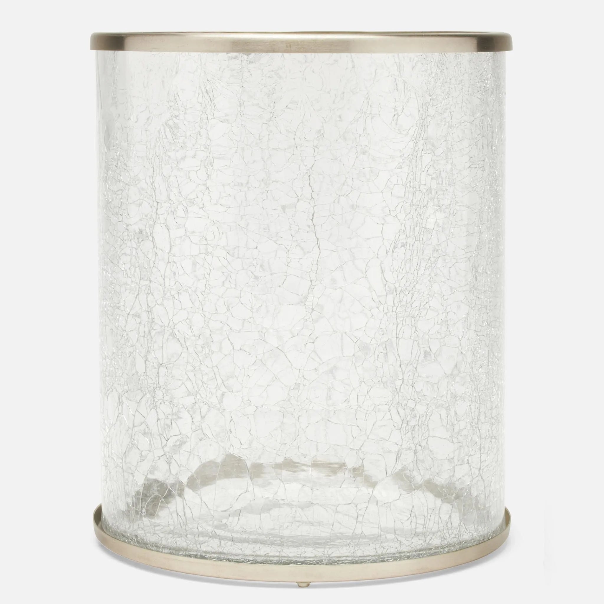 Subtly glamorous, our Pomaria bath collection brightens a bathroom with light-catching crackled glass accented in brushed Gold, brushed Silver, or dark bronze.
