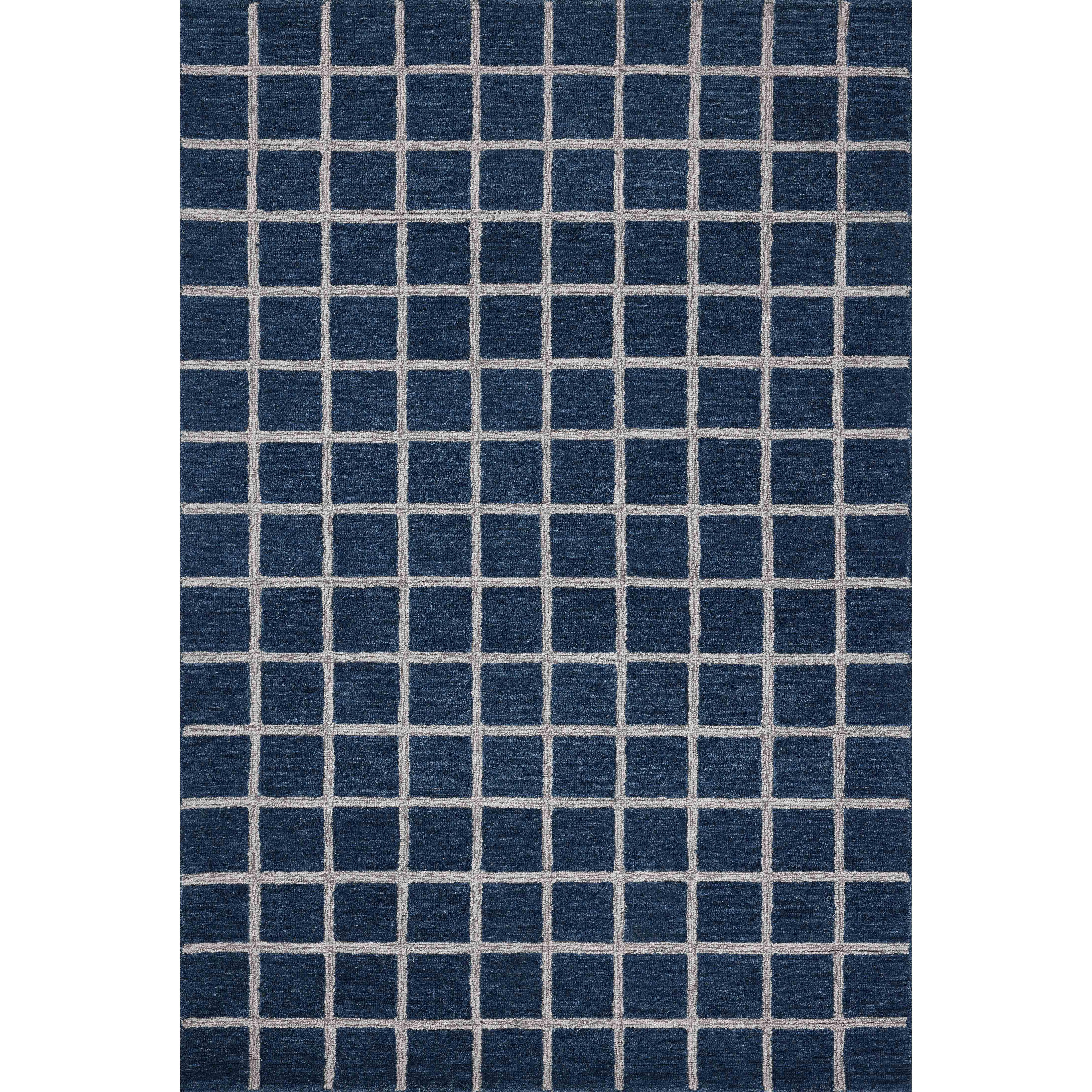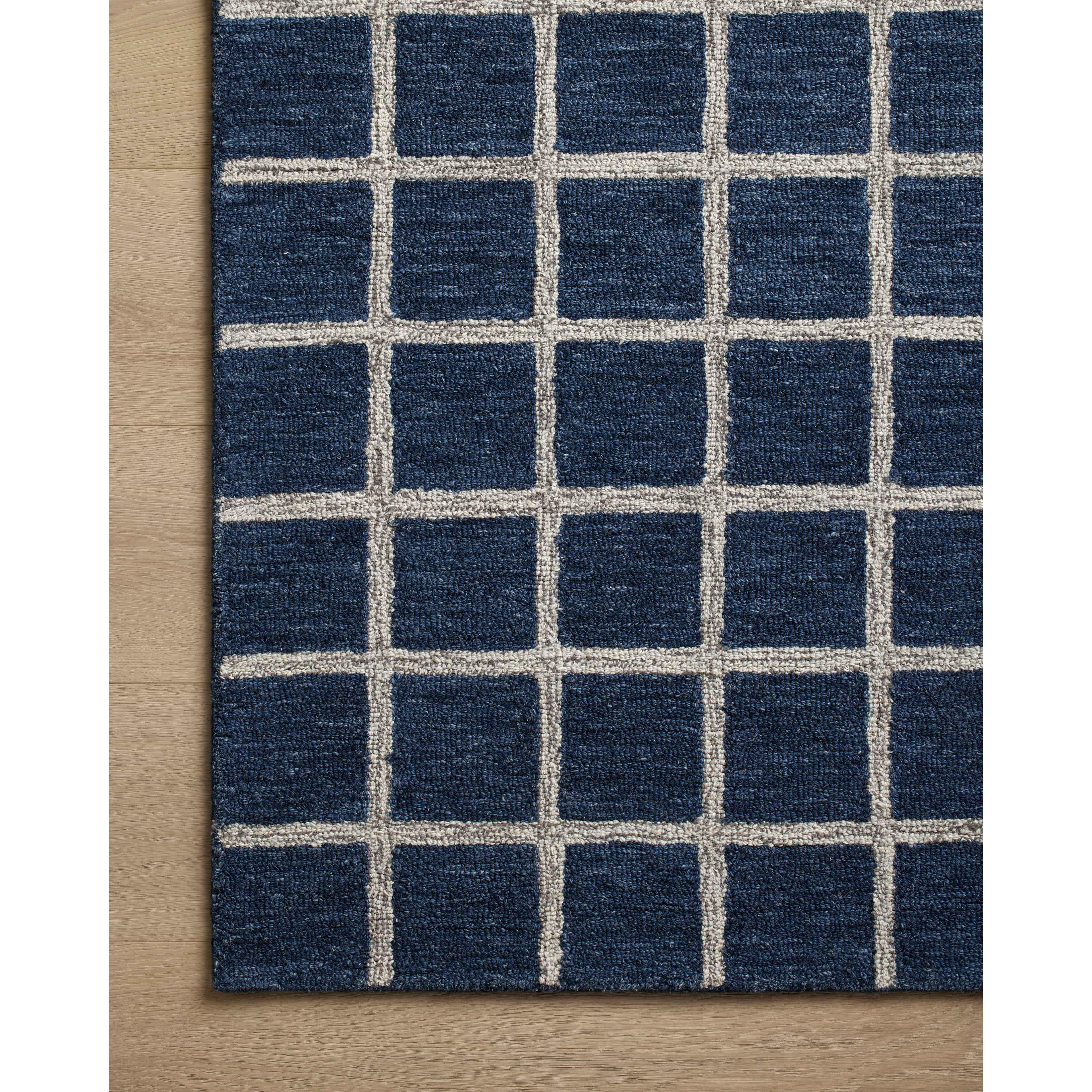 exquisite Polly Pol 05 Navy Silver rug from the exclusive Polly collection collaboration between Chris Loves Julia and Loloi. Hand-tufted with a blend of wool and jute pile, this rug offers a modern twist on classic designs. The striking gridded patterns are elegantly complemented by a soothing neutral color scheme, making Polly a versatile and timeless addition to any room.