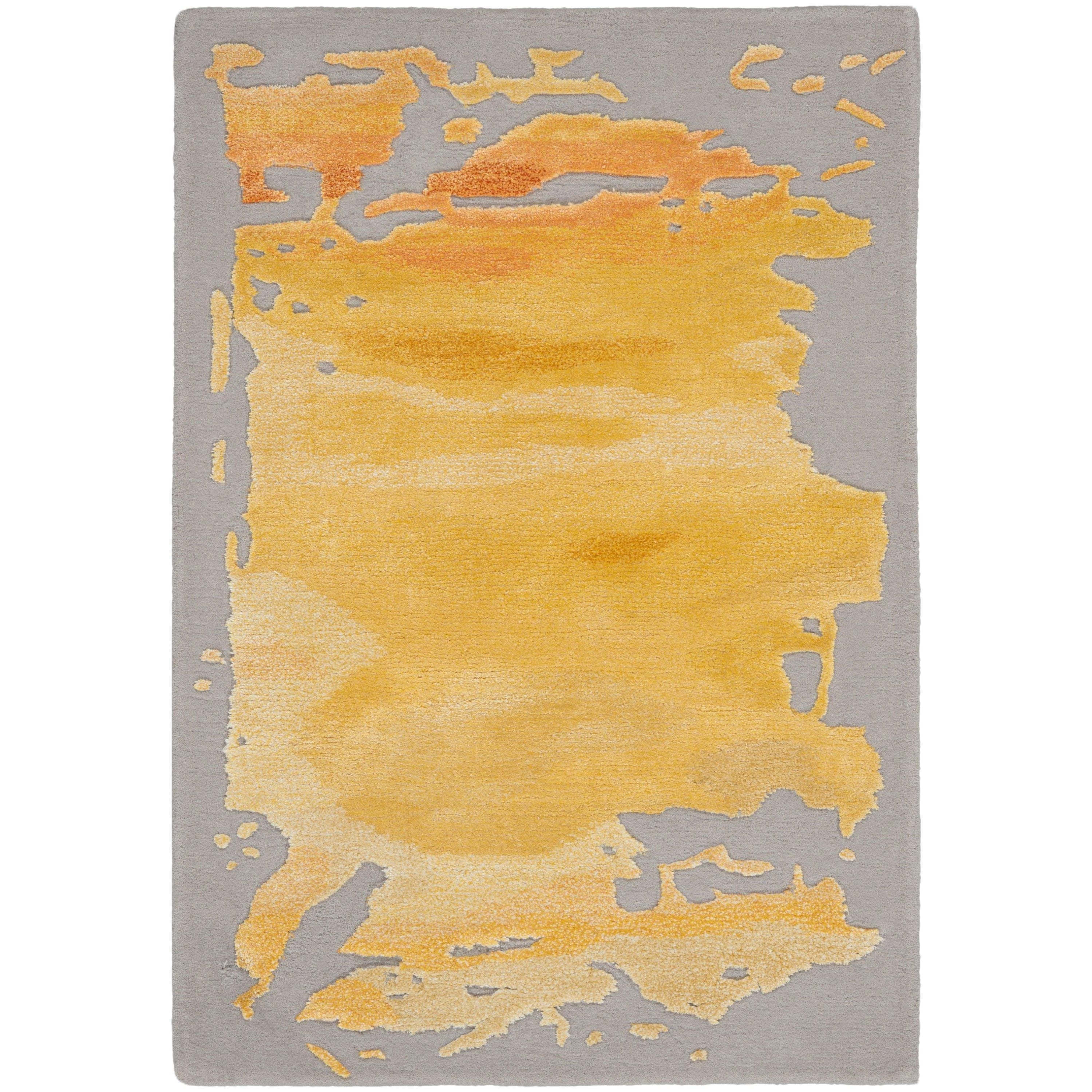 stunning Prismatic PRS19 Grey Gold rug from Nourison's captivating collection. Crafted with meticulous attention to detail, these rugs are designed to bring charismatic color and daringly dimensional texture to any modern home. Each rug is expertly hand-tufted using the finest New Zealand wool combined with silk-like Luxcelle™, ensuring a luxurious feel underfoot.