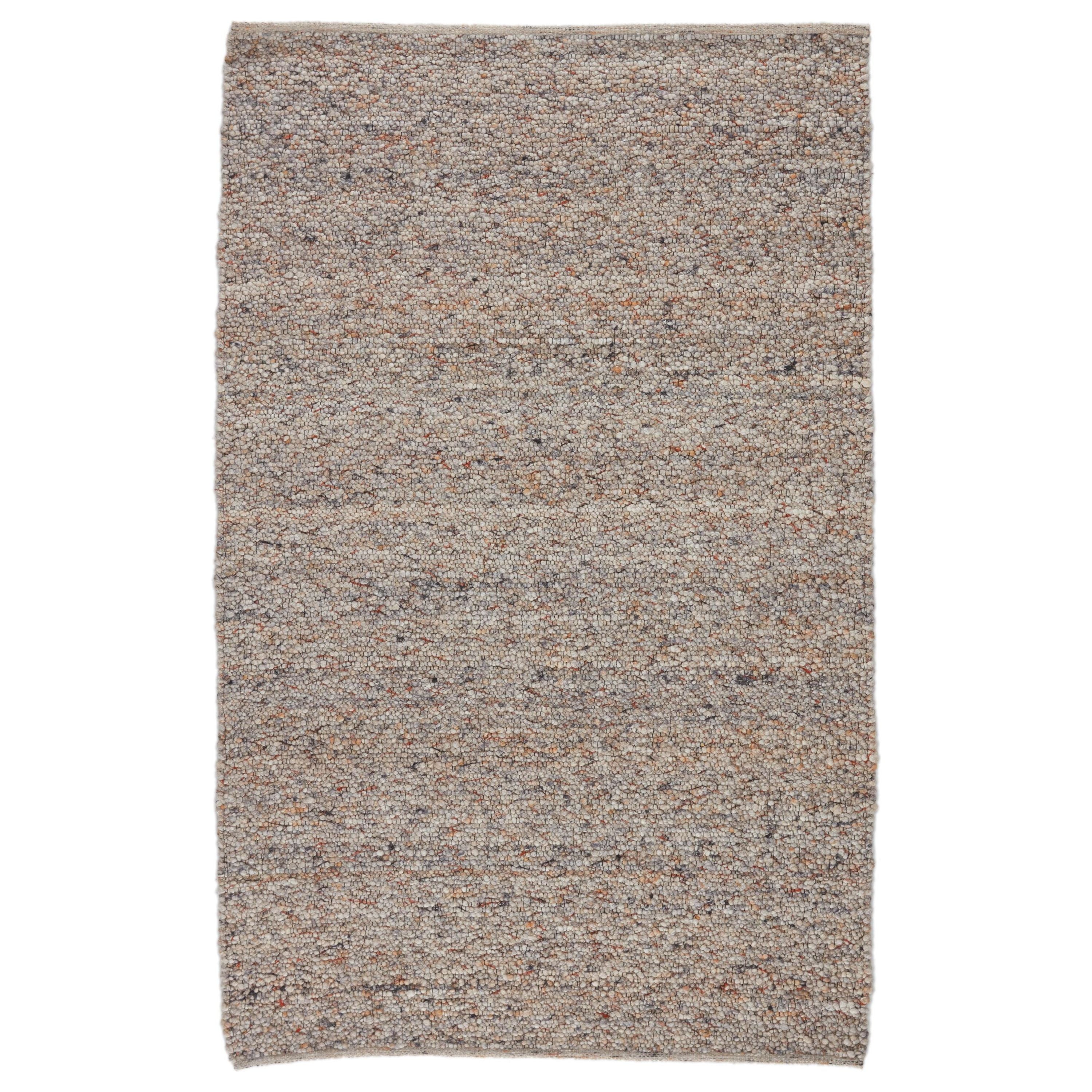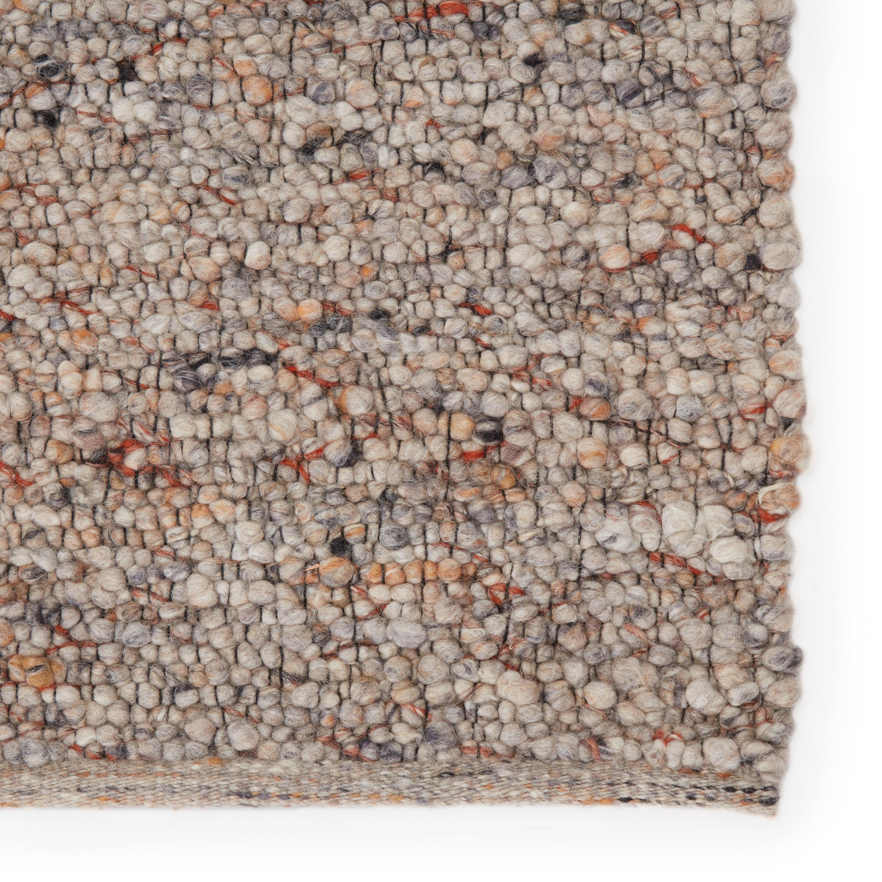 The Quiet Time collection offers textural yet solid designs for modern spaces in need of a relaxed and inviting accent. Handwoven of wool and jute, the Hadren rug showcases a texture-rich boucle design with neutral hues of light gray, ivory, beige, and rust. This grounding rug is perfect for layering with other textile mediums or complementing a hygge-centric home.