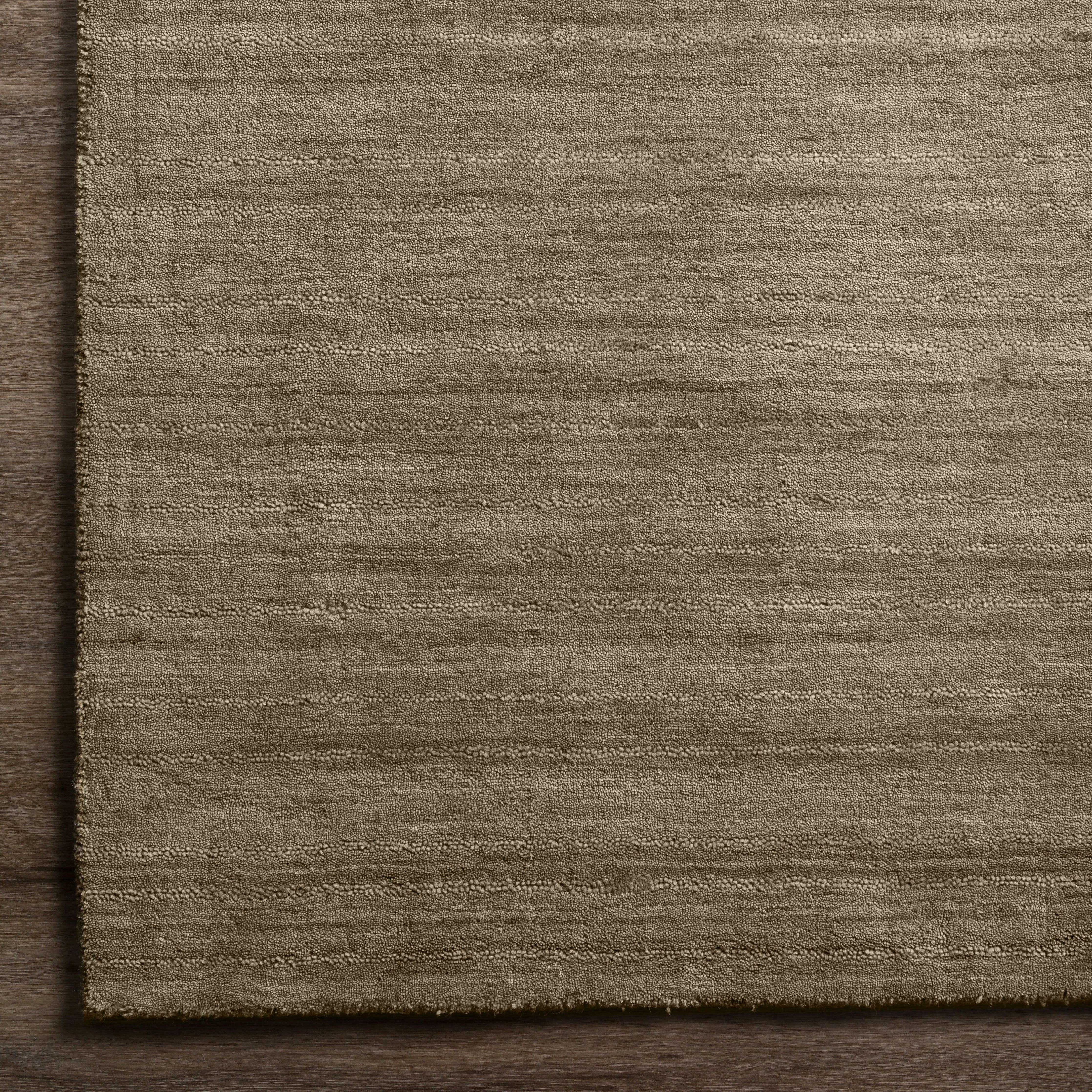 Rafia RF100 Taupe rug, a stunning addition to any space. Crafted with 100% wool yarns and unique multi-tonal gabbeh dyeing, this rug showcases a beautiful blend of colors that add depth and texture to your room. The "active solid" design boasts 4 to 6 shades of the base color, creating a luxurious look that exudes sophistication and elegance.