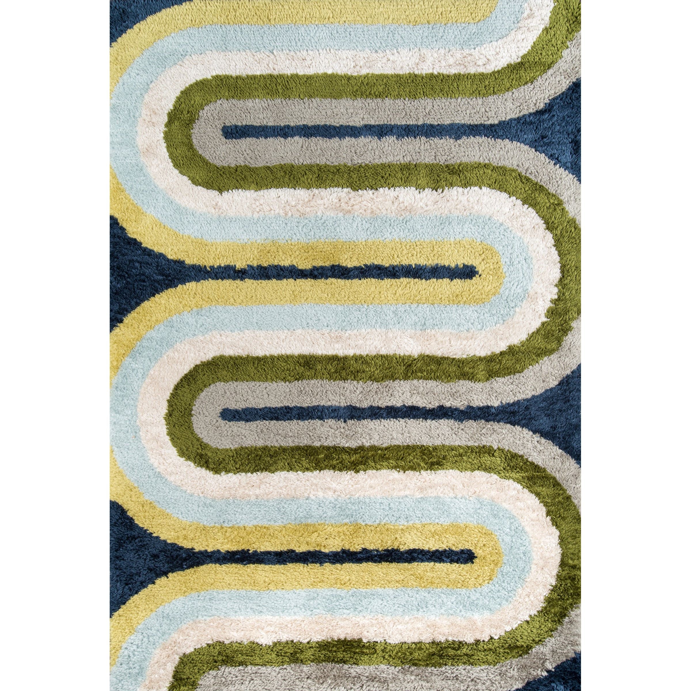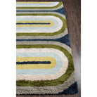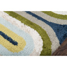 Retro Ret 2 Multi area rug, a trendy piece inspired by mid-century design aesthetics. With groovy shapes and shaggy textures reminiscent of the 70s, this modern rug brings a touch of Scandinavian style to your space. The vibrant color palette includes combinations of burgundy red, grass green, sky blue, and soft pink, adding a playful and retro flair to any room.