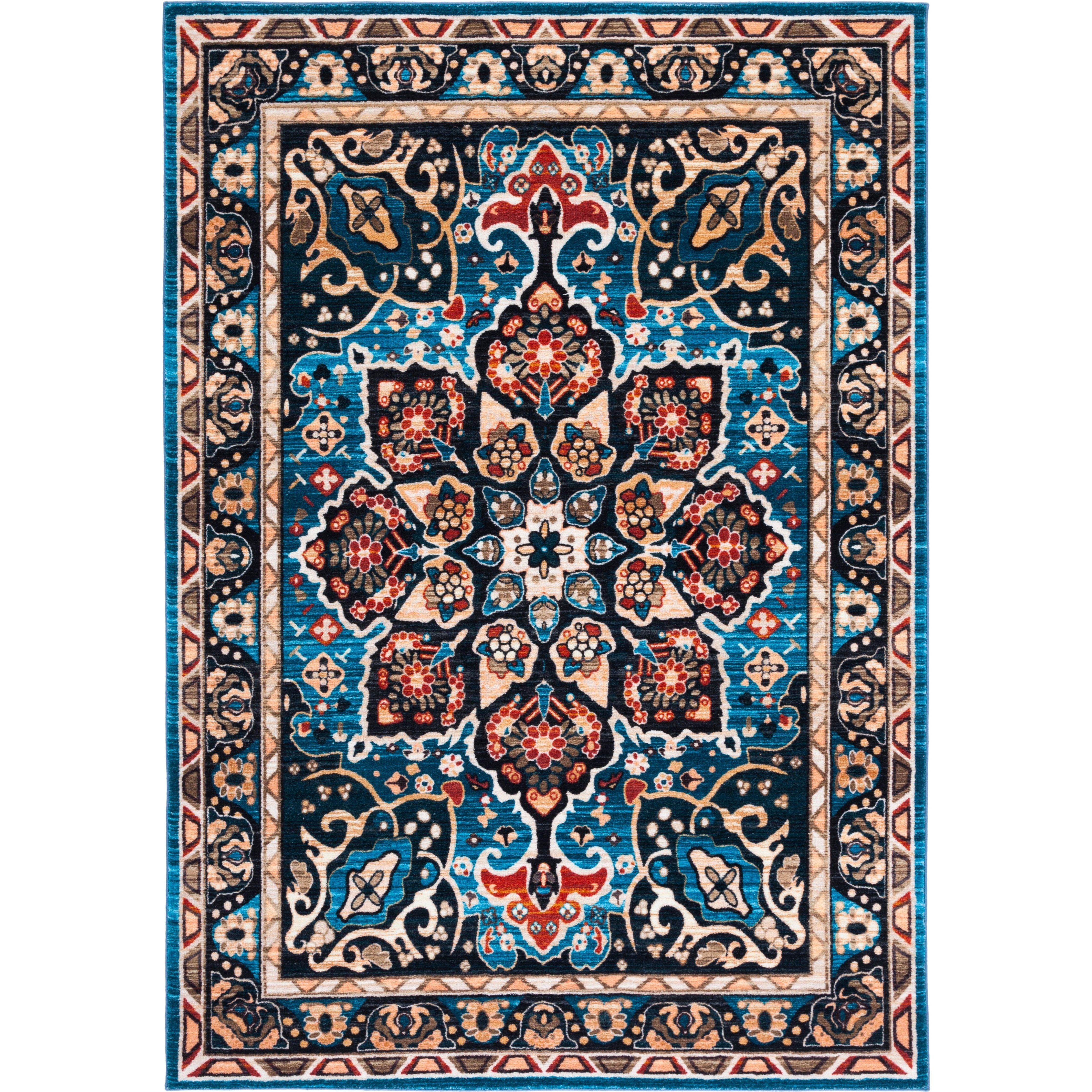 Riviera RIV155M, a stylish addition to any home with its rich colors and detailed patterns. The Riviera Collection of area rugs is designed to bring trendy and chic designs to even the busiest households. These easy-care rugs are machine washable, making them perfect for life's unpredictable messes. They also feature a non-slip backing for added stability in high-traffic areas, ensuring safety and durability. Ideal for various rooms such as the bedroom, living room, dining room, foyer, home office, or playroom, this rug has an approximate thickness of 0.31 inches.