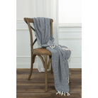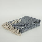 This stunning hand loomed throw in a chic navy blue and white diamond design blends modern elegance with classic charm. This beautiful throw features hand tied fringe and a light texture that is ultra soft and cozy--perfect for a comfortable evening at home with loved ones. The urbane design is contemporary with a touch of classic glam that will accentuate any decor. Add stunning sophistication and warmth to your home with an elegant throw blanket that boasts both elite style and smart functionality. It will complement the clean lines of a modern living room as well as the warm hues of a cozy bedroom. Its timeless design ensures that it will be a cherished item in your home for many years to come.