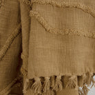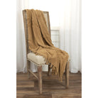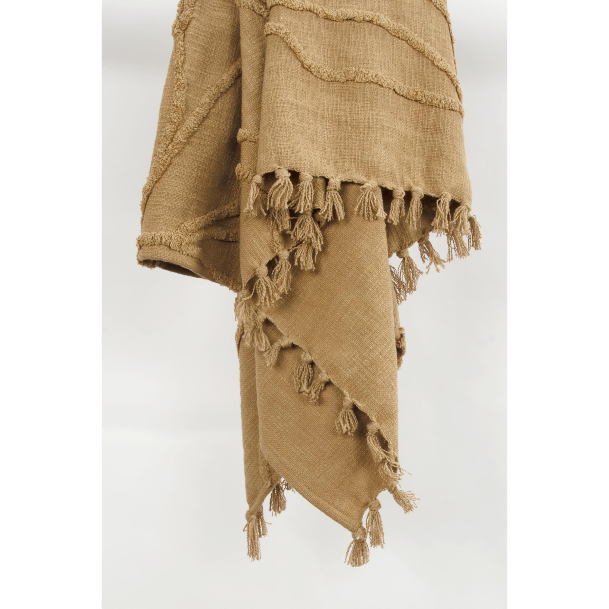 This refined woven throw from Rizzy Home will add a touch of elegance and comfort to any room. Carefully woven using slubbed yarns, this throw has a modern vibe that is on-trend while also emitting bohemian charm in a rich gold hue. Each throw features hand-tufted detailing and warp yarns that are hand-tied into tassels. The medium to heavy weight design provides ample warmth while being breathable, perfect for any season. Style meets function. Each throw is specially washed for extra softness, making it gentle and cozy against your skin. Bring a touch of warmth and comfort to your home with this gorgeous throw that you will cherish for years to come.