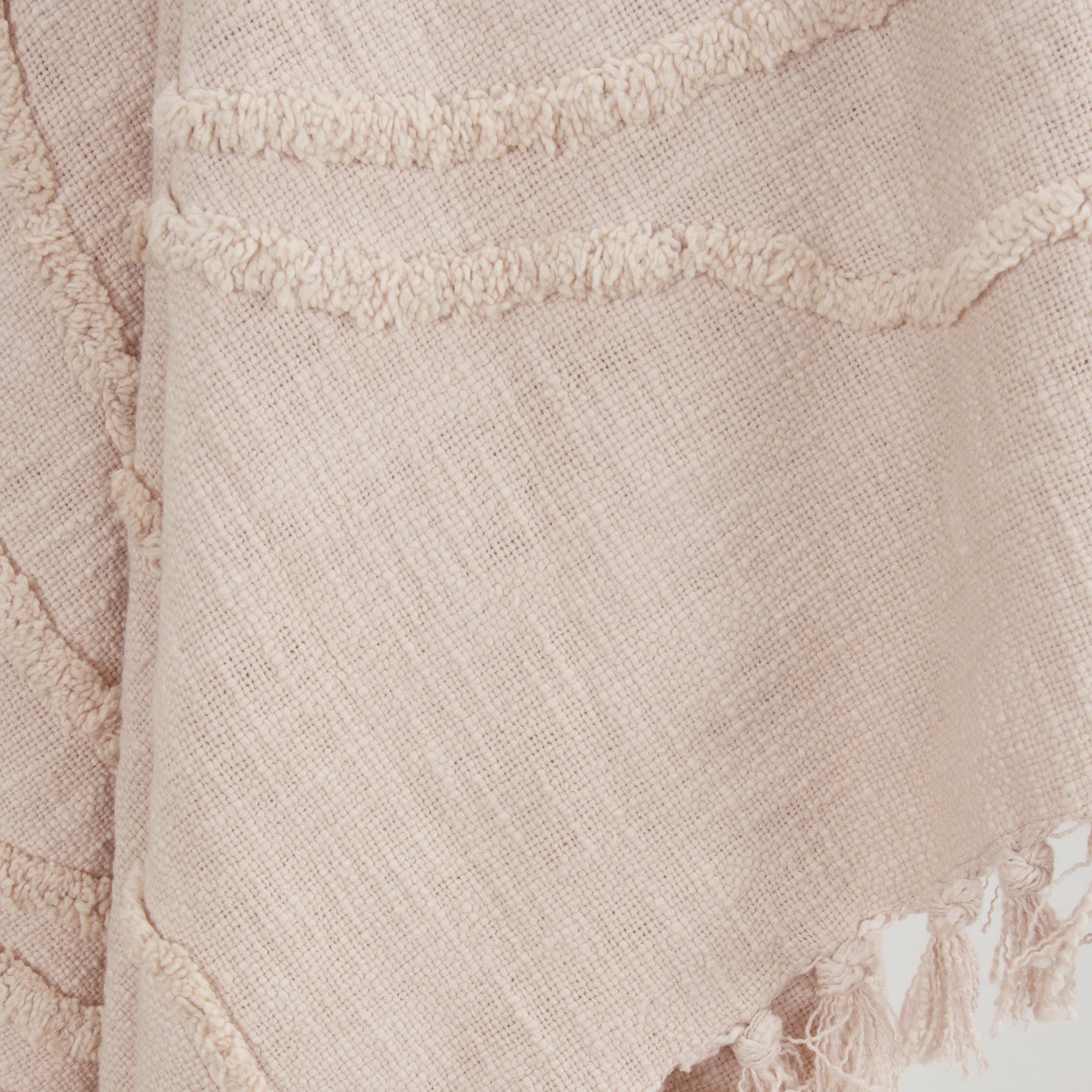 This refined woven throw from Rizzy Home will add a touch of elegance and comfort to any room. Carefully woven using slubbed yarns, this throw has a modern vibe that is on-trend while also emitting bohemian charm in a delicate blush hue. Each throw features hand-tufted detailing and warp yarns that are hand-tied into tassels. The medium to heavy weight design provides ample warmth while being breathable, perfect for any season. Style meets function. Each throw is specially washed for extra softness, making it gentle and cozy against your skin. Bring a touch of warmth and comfort to your home with this gorgeous throw that you will cherish for years to come.