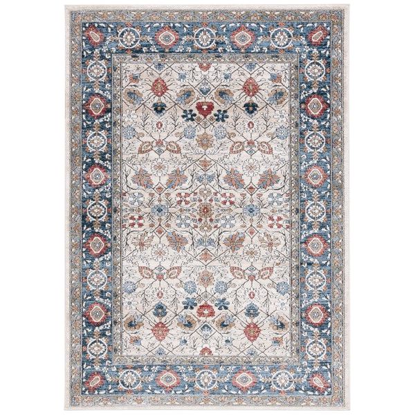 exquisite Rosewood ROW106A Ivory Blue rug, a fusion of traditional artistry and contemporary style. With its vibrant colors, intricate designs, and elegant raised cut pile, this rug effortlessly elevates any living space with a touch of timeless charm. Crafted using premium synthetic yarns, it offers both durability and comfort that lasts for years to come.