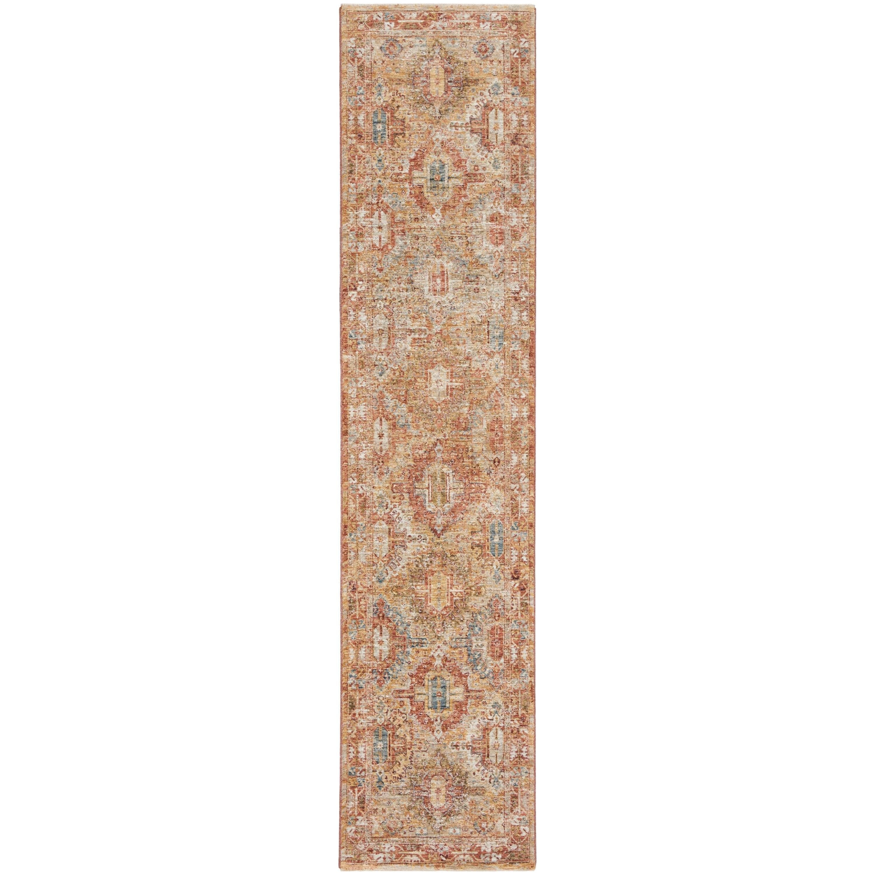 Introduce timeless elegance to your home with the Sahar SHR01 Rust rug from the Nourison collection. Adorned with intricate Persian-inspired patterns, these rugs exude a vintage charm complemented by intentional distressing for a touch of classic allure. The Sahar range offers a variety of sizes, perfect for every space in your home – whether it's an entryway, hallway, living room, dining area, kitchen, or bedroom. Crafted from resilient polyester fibers through machine-made precision, these rugs are not only durable but also luxuriously soft to the touch and provide a comfortable feel underfoot.