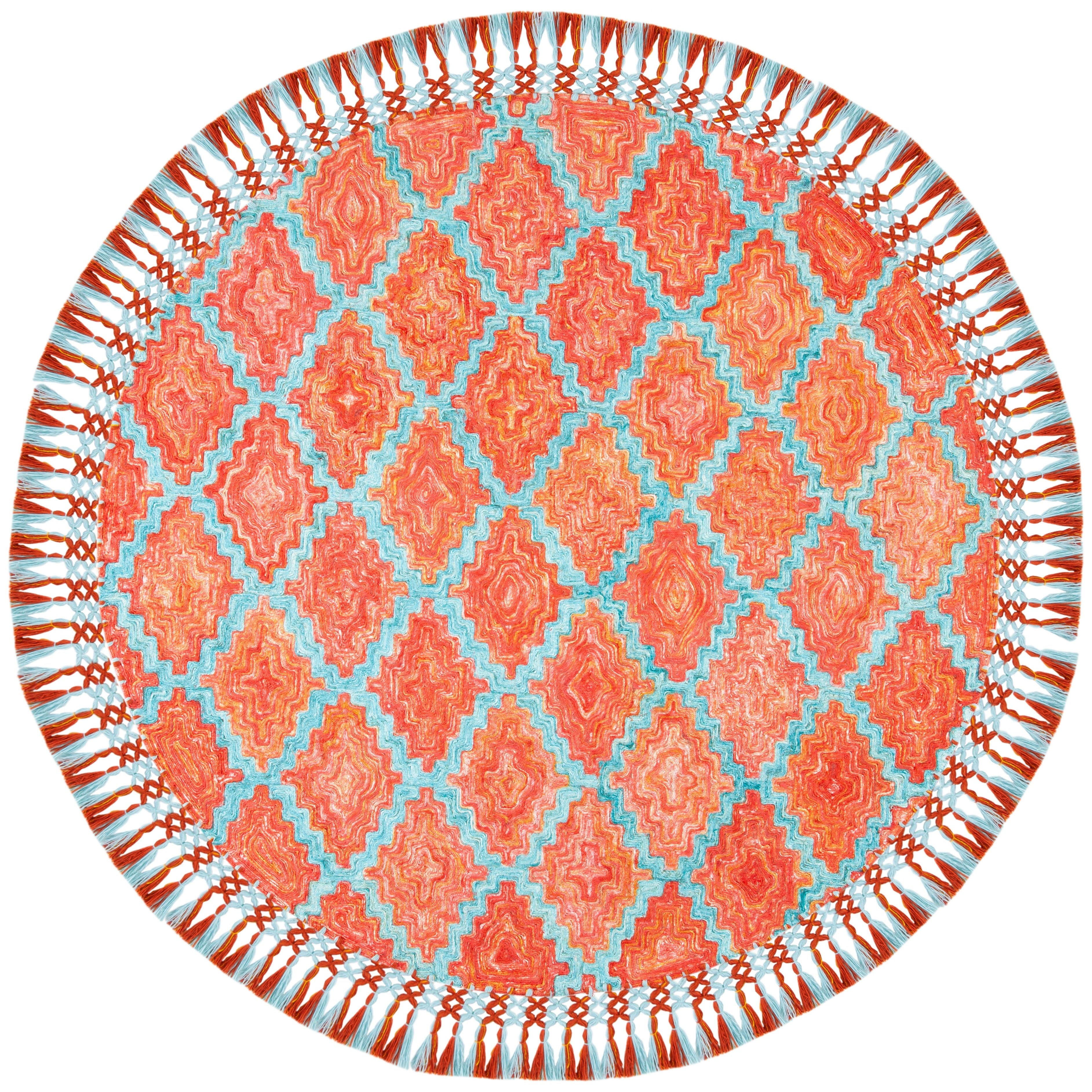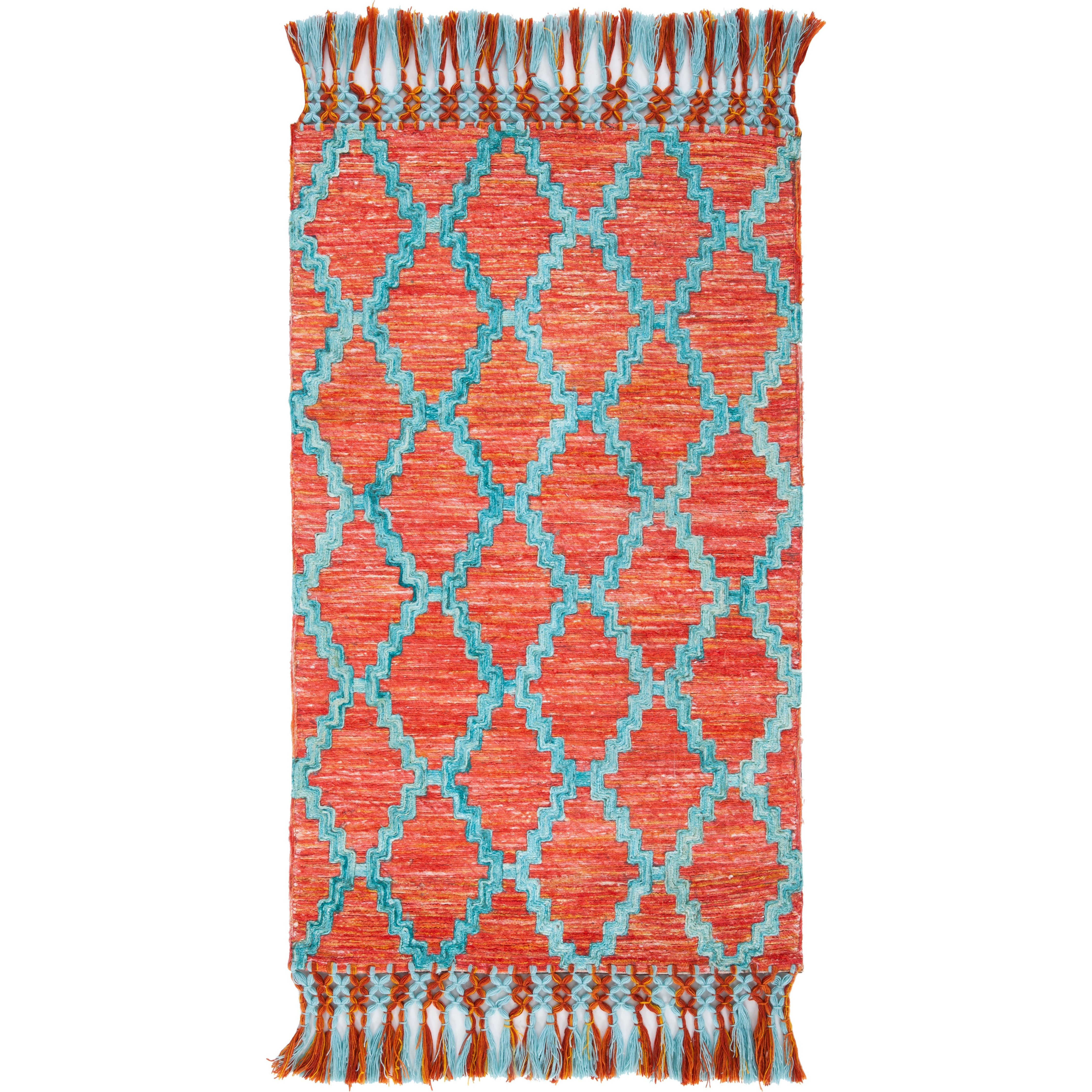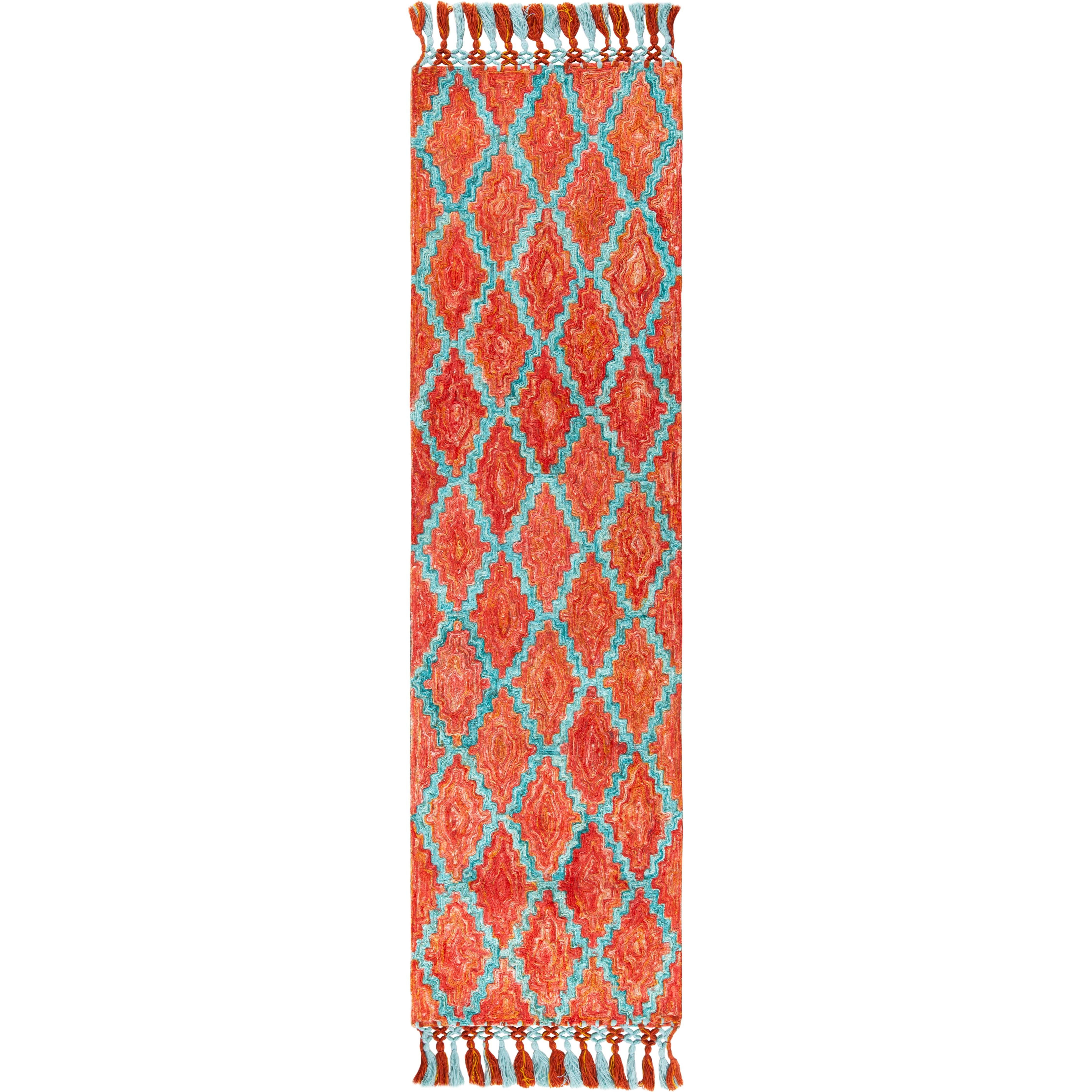 Elevate the aesthetic of your home with the Sahara SAH467P rug from SAFAVIEH's Sahara Collection. Hand-tufted by skilled artisans, this rug features vibrant geometric Moroccan-inspired patterns that add a touch of contemporary boho charm to any room. Whether placed in a dining space, kitchen nook, or living room, it creates a relaxed and stylish ambiance with its approximate thickness of 0.5 inches.