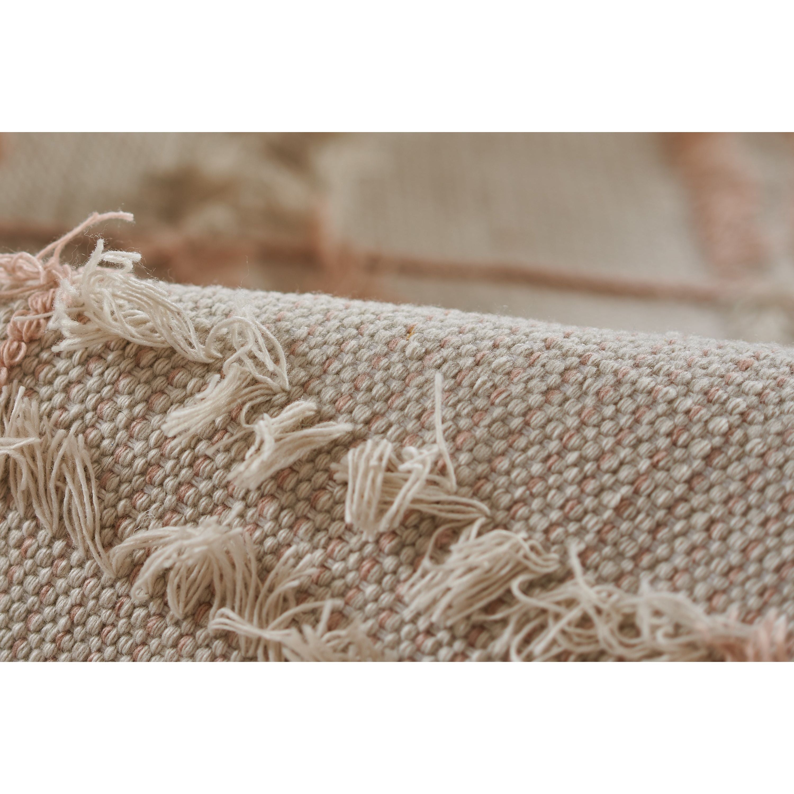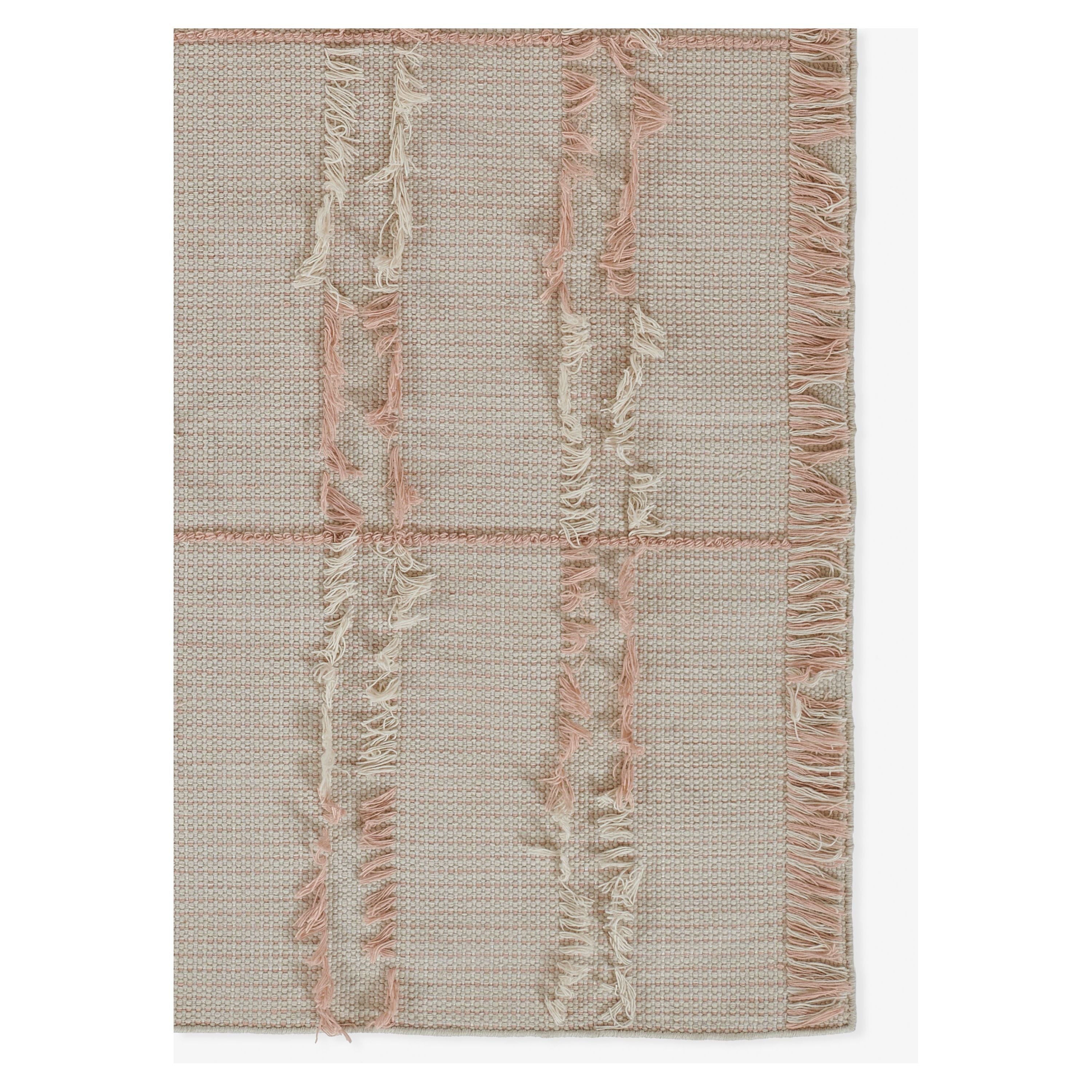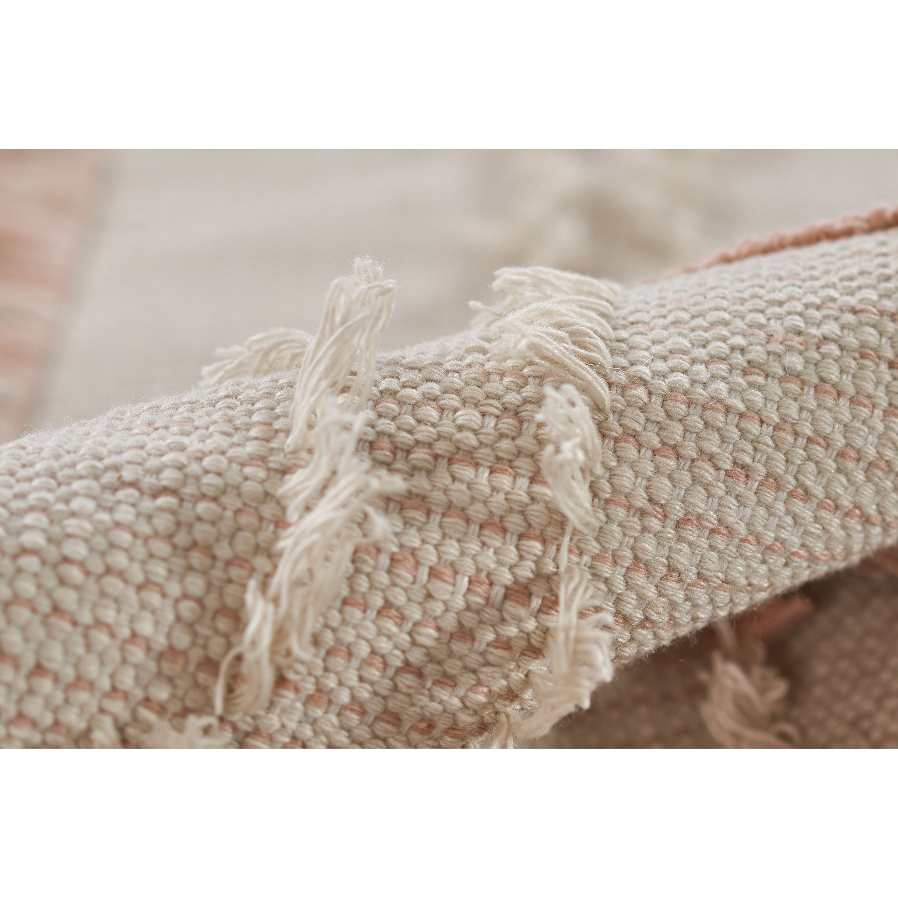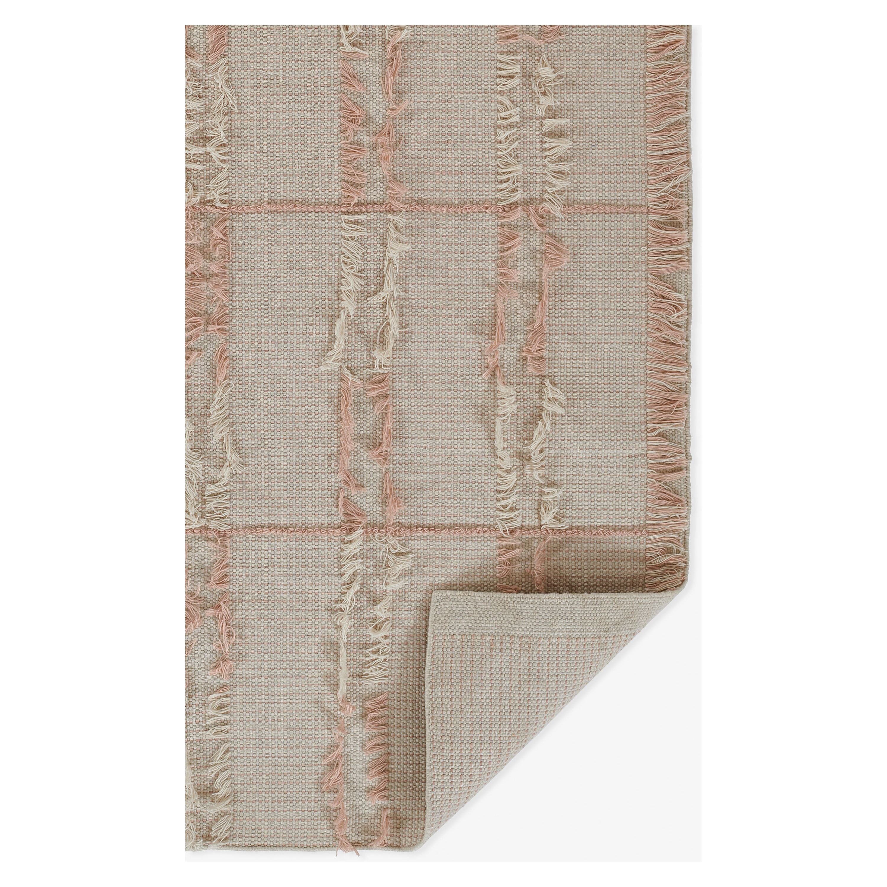 Serena Srn 1 Pink rug from our bohemian-inspired Serena Collection. These versatile flat-weave rugs offer a unique twist on classic stripes, adding a refreshing touch to any space. Each rug features shaggy fringe pile details woven into the design, creating a playful contrast in appearance and texture.
