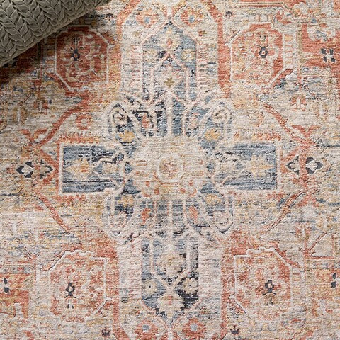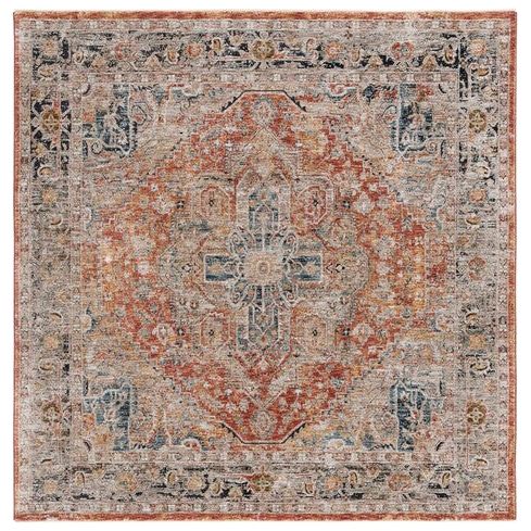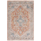 exquisite Silverado SVD110P Rust Blue rug, a perfect blend of classic design and modern durability. Ideal for families, these area rugs showcase timeless patterns in trendy colors, enhanced with an antique finish and elegant fringes. Elevate your room decor with these affordable traditional rugs that exude sophistication and charm.