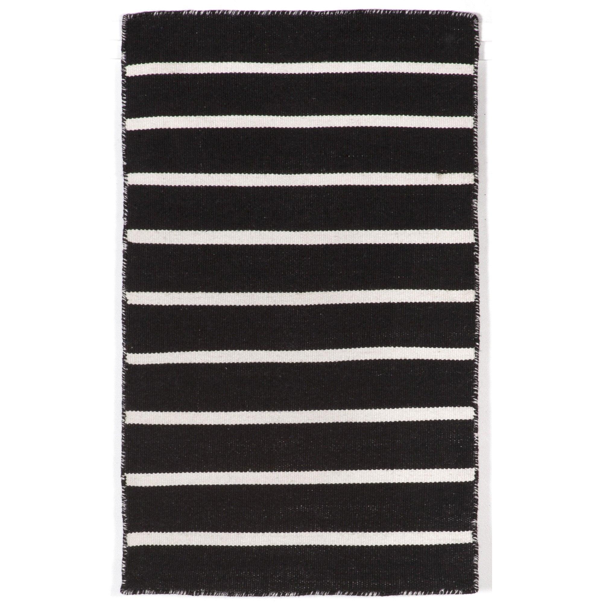 Introducing our Sorrento Pinstripe Black rug, a stylish addition to any indoor or outdoor space. The hand-woven construction showcases a trendy pinstripe pattern in vibrant blended colors against a sleek black backdrop. Crafted from durable synthetic fiber, this reversible flatweave rug is weather-resistant and perfect for high-traffic areas. Its low-profile design exudes casual elegance, making it suitable for various rooms in your home or outdoor patio.