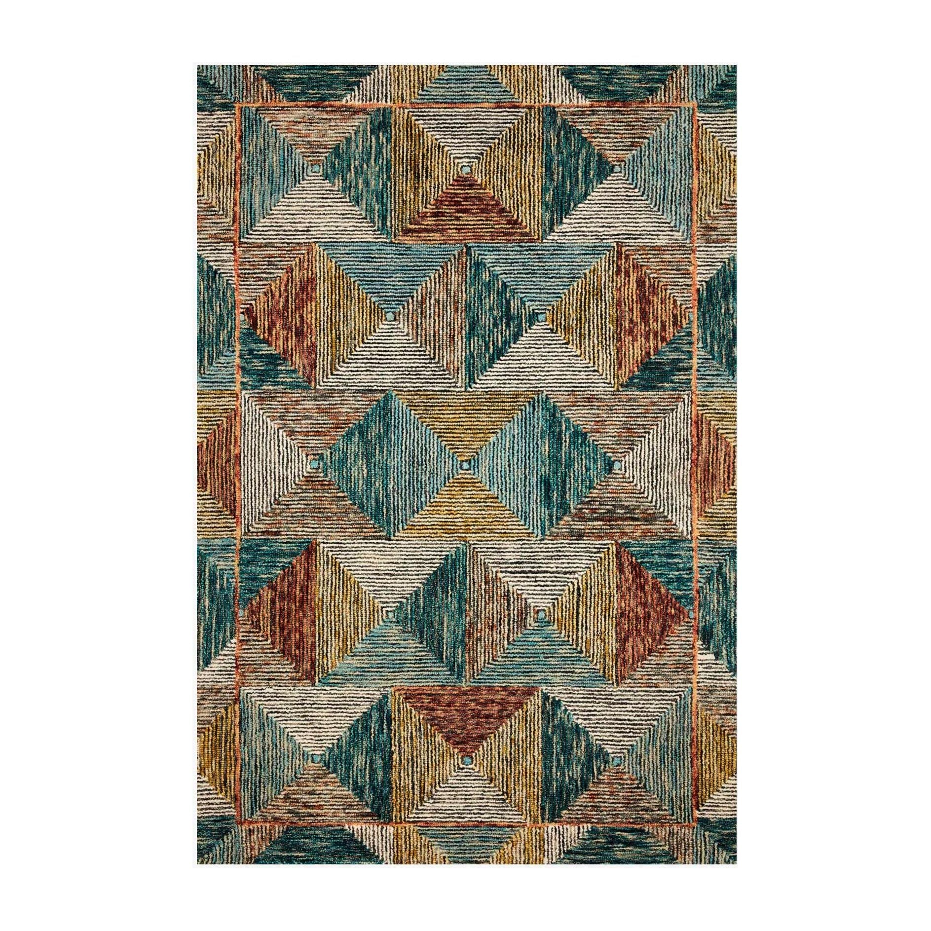 Spectrum Spe 01 Lagoon Spice, a stunning wool rug expertly crafted by artisans in India. The Spectrum collection is renowned for its vibrant colors and rich textures, adding a touch of playfulness and eclecticism to any room. This rug serves as a captivating geometric focal point that instantly elevates the aesthetic of your space.