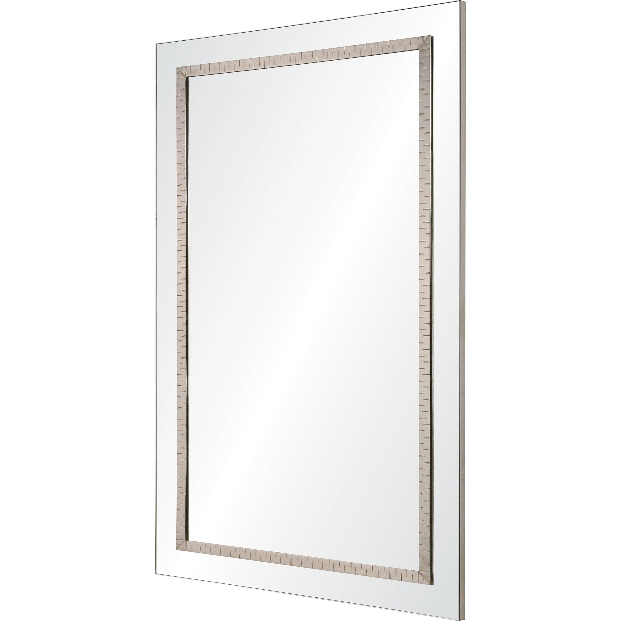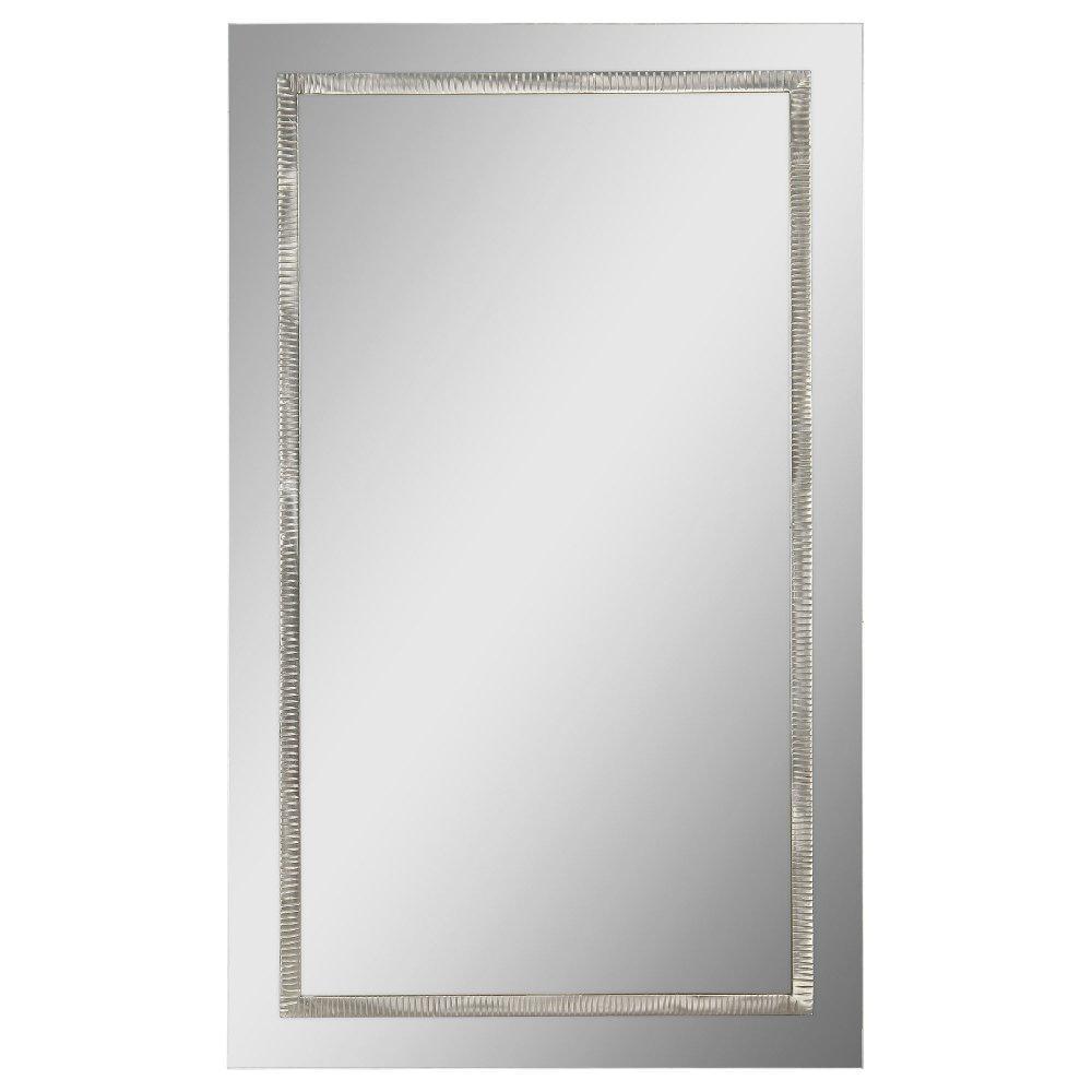elegant Stanton Mirror, a must-have addition to elevate your space. This mirror showcases a refined design, boasting a ribbed metal inlay that exudes sophistication. The striking satin nickel finish adds a touch of luxury and modernity to any room it graces.