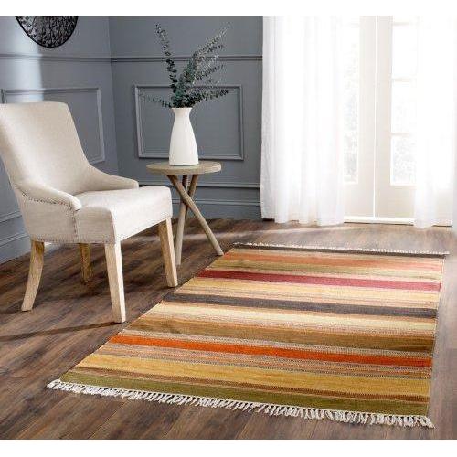 Striped Kilim STK315A, a stylish addition to our flatweave rug collection. The warm and inviting color palette of each stripe effortlessly blends various design styles found in Western and California decor. From Arts & Crafts to Navajo influences to transitional furnishings, these rugs bring a versatile touch to any space.