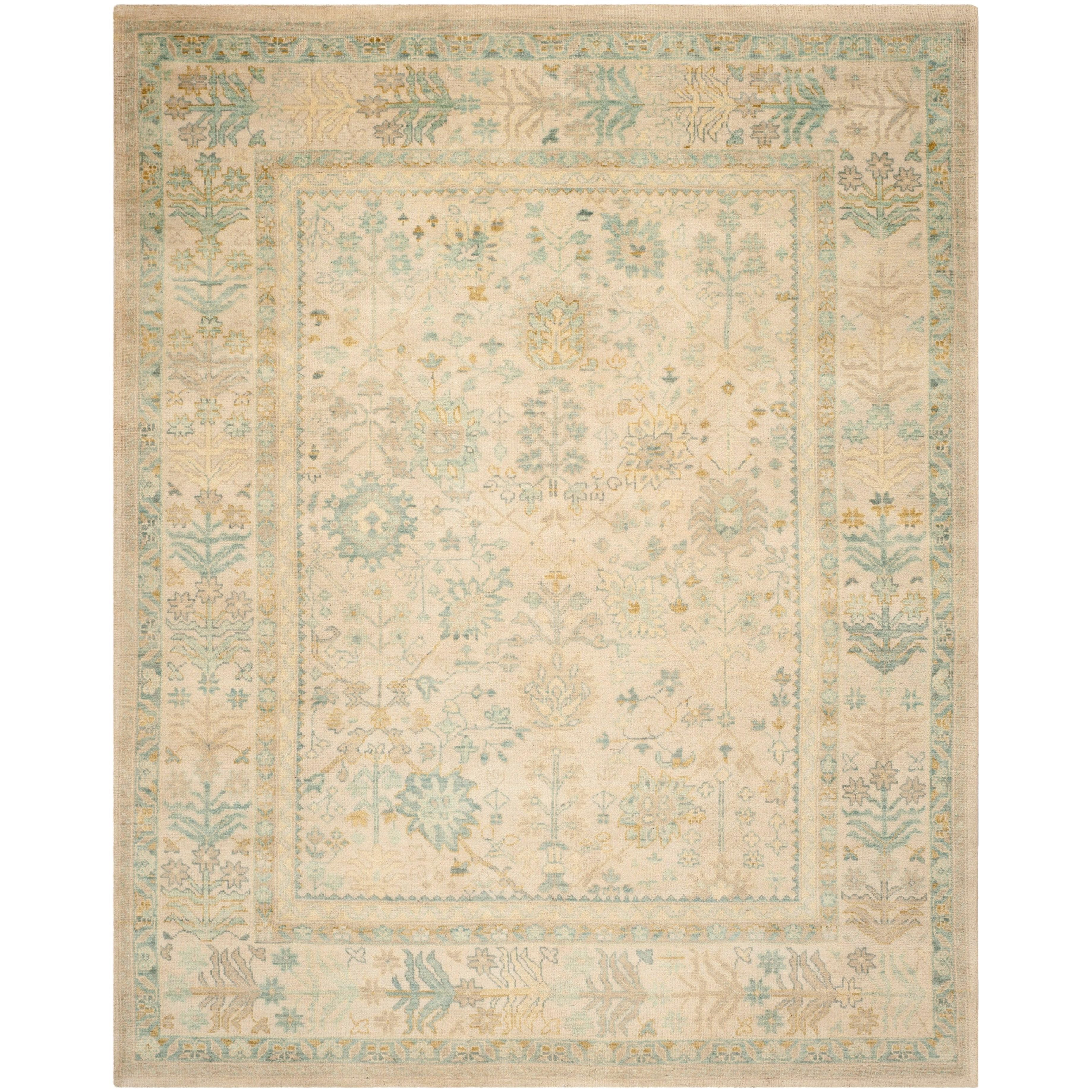 exquisite Sultanabad SUL1065A Ivory Blue rug from Safavieh's renowned collection. Crafted with the finest wool, this piece showcases timeless contemporary designs that are as luxurious as they are durable. The hand-knotted construction ensures superior quality and longevity, making it a perfect addition to any space in your home.