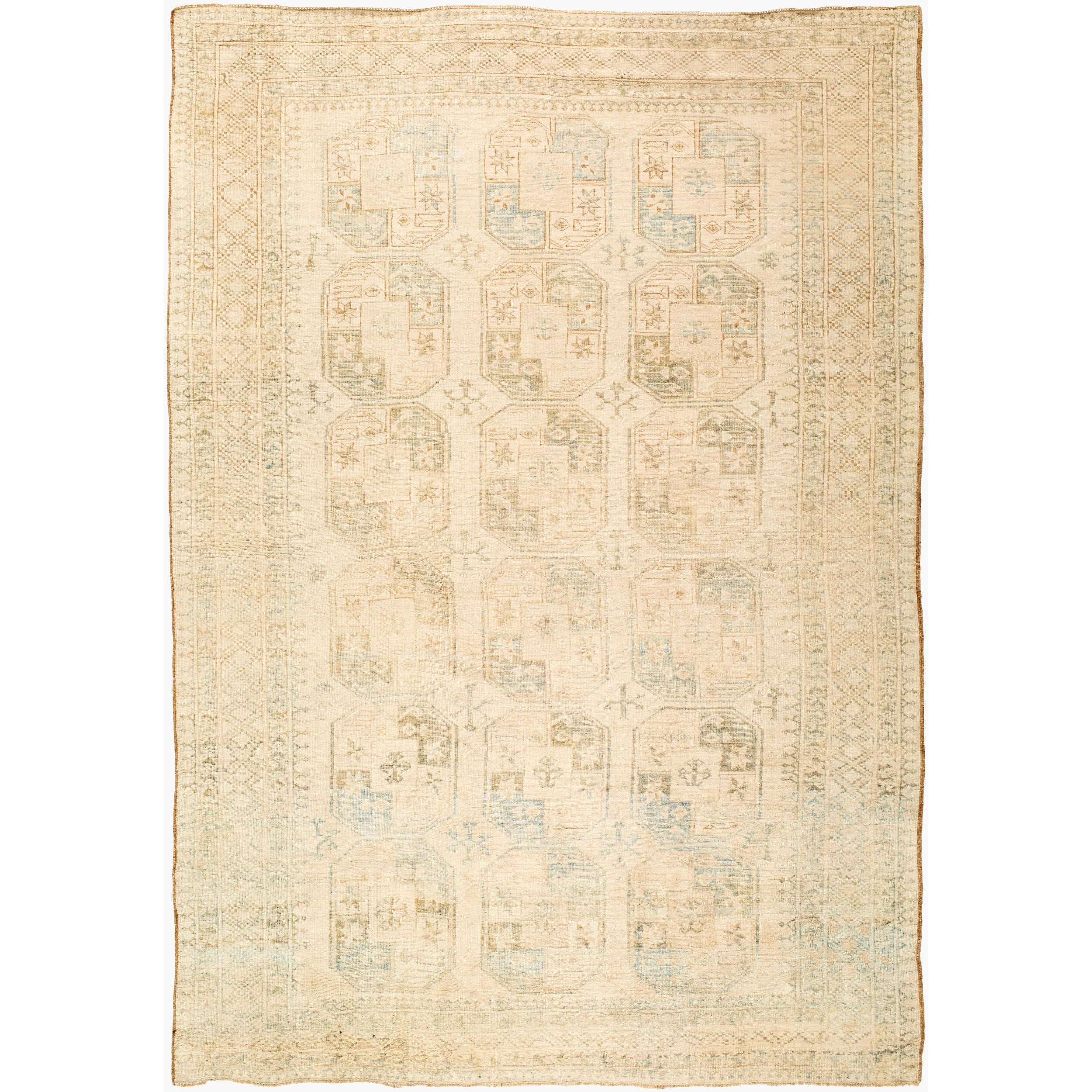 Detailed Colors: The prominent colors in this rug are: 'Beige, Sand, Sky Blue, Olive, Cream'