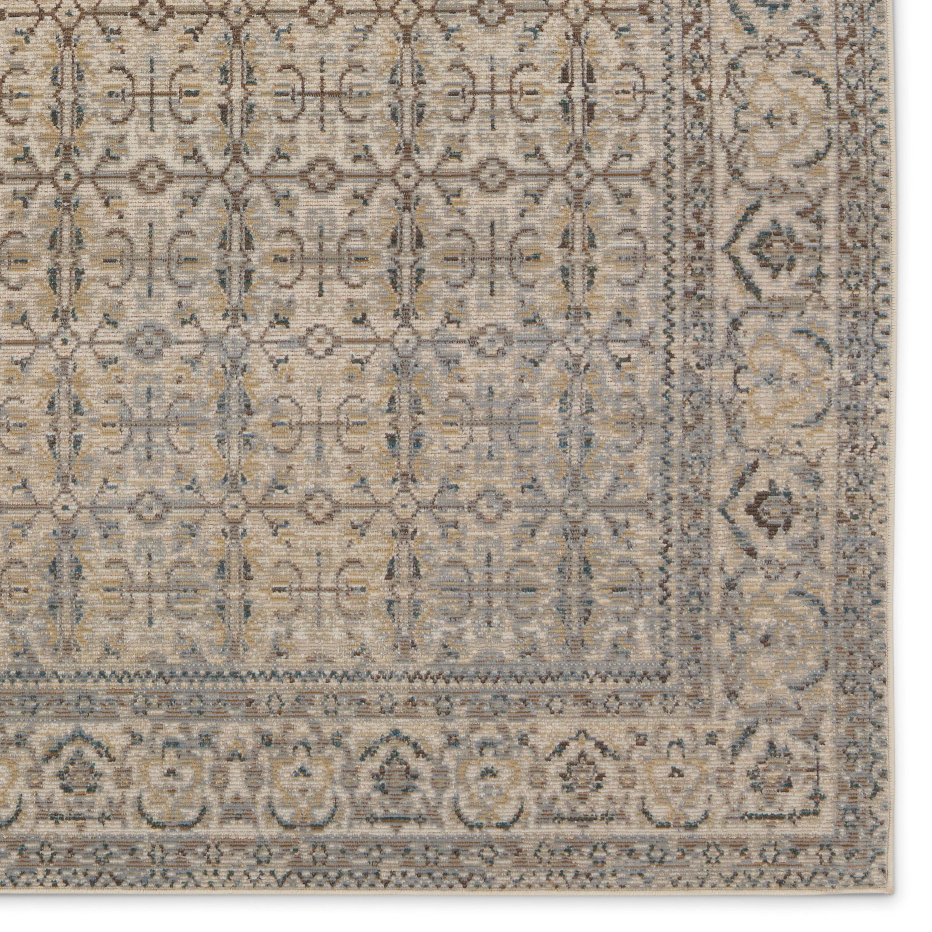 Swoon SWO22 Olivine, a rug that adds enchanting style to any space. This collection features whimsical color combinations inspired by traditional Turkish textiles, giving it a vibrant and timeless appeal. The Olivine design showcases a beautiful tile pattern in shades of gray, brown, cream, muted yellow, and teal.