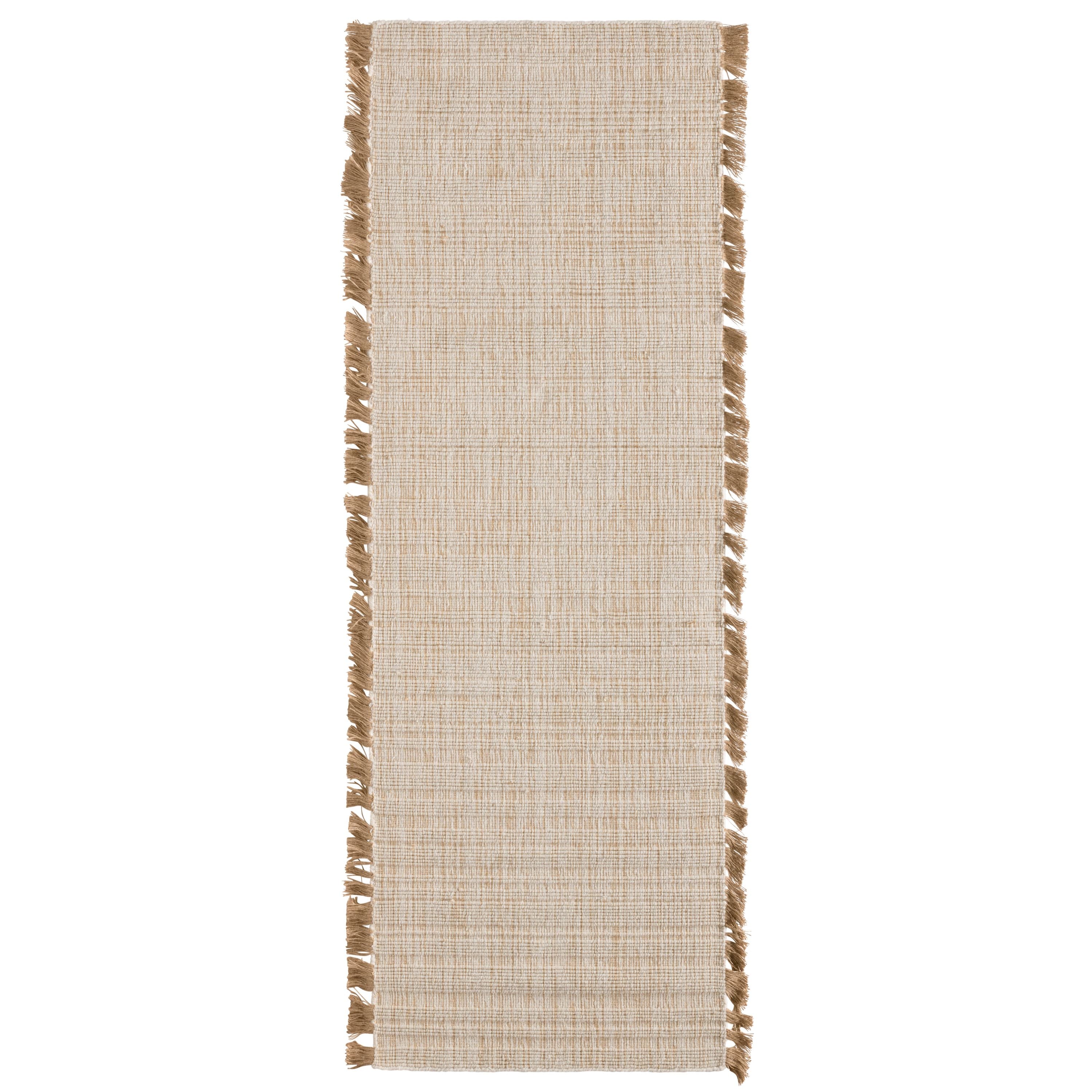 The Tienne collection draws inspiration from the natural world through rich texture and a wool, cotton, and jute make. Handloomed by artisans in India, these rugs exude a simple elegance suited for any modern home. The Bandera design’s cream and beige colorway provides a neutral, grounding effect in contemporary spaces. The textural, ribbed pile and jute fringe add visual and tactile intrigue to medium and low traffic spaces of the home such as bedrooms, guestrooms, and formal living spaces.