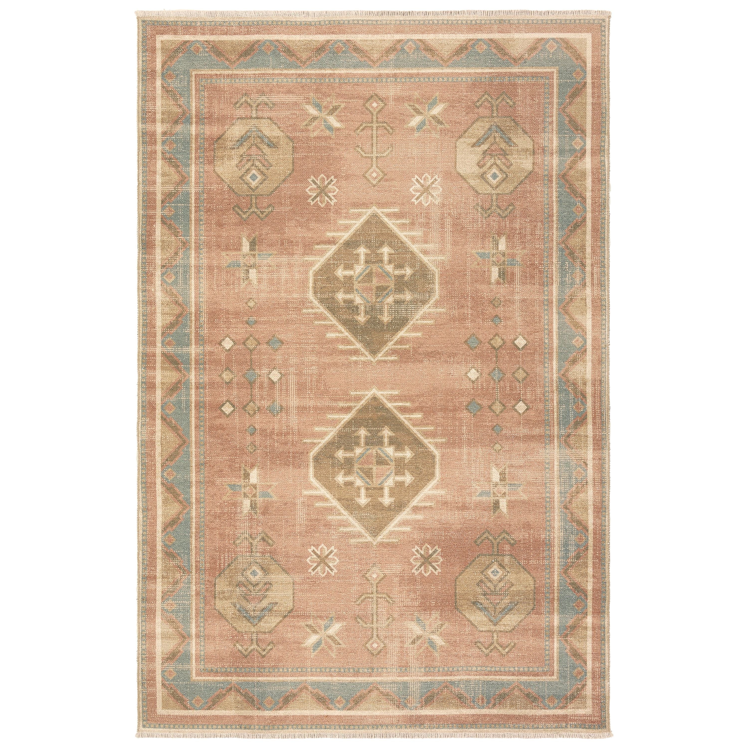 The Todori collection transforms living spaces into an oasis of vintage elegance and practical luxury. These rugs are designed to withstand the demands of everyday life, making them perfect for busy households. Their machine washable nature ensures effortless maintenance, while the durable construction promises long-lasting beauty. The Voentia area rug showcases Southwestern, dual-medallions with a geometric border in hues of rust, tan, blue, brown, and cream.