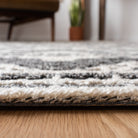 Elevate your home decor with the luxurious Trace TRC216F area rug. Made from pure wool, this hand-tufted rug features intricately woven raised patterns and textures that add a touch of elegance to any room. The understated color palette highlights the all-over looped designs that stand out against the solid colored field, creating a regal and sophisticated look. With an approximate thickness of 0.5 inches, the Trace rug offers both comfort underfoot and a warm ambiance to your living space.