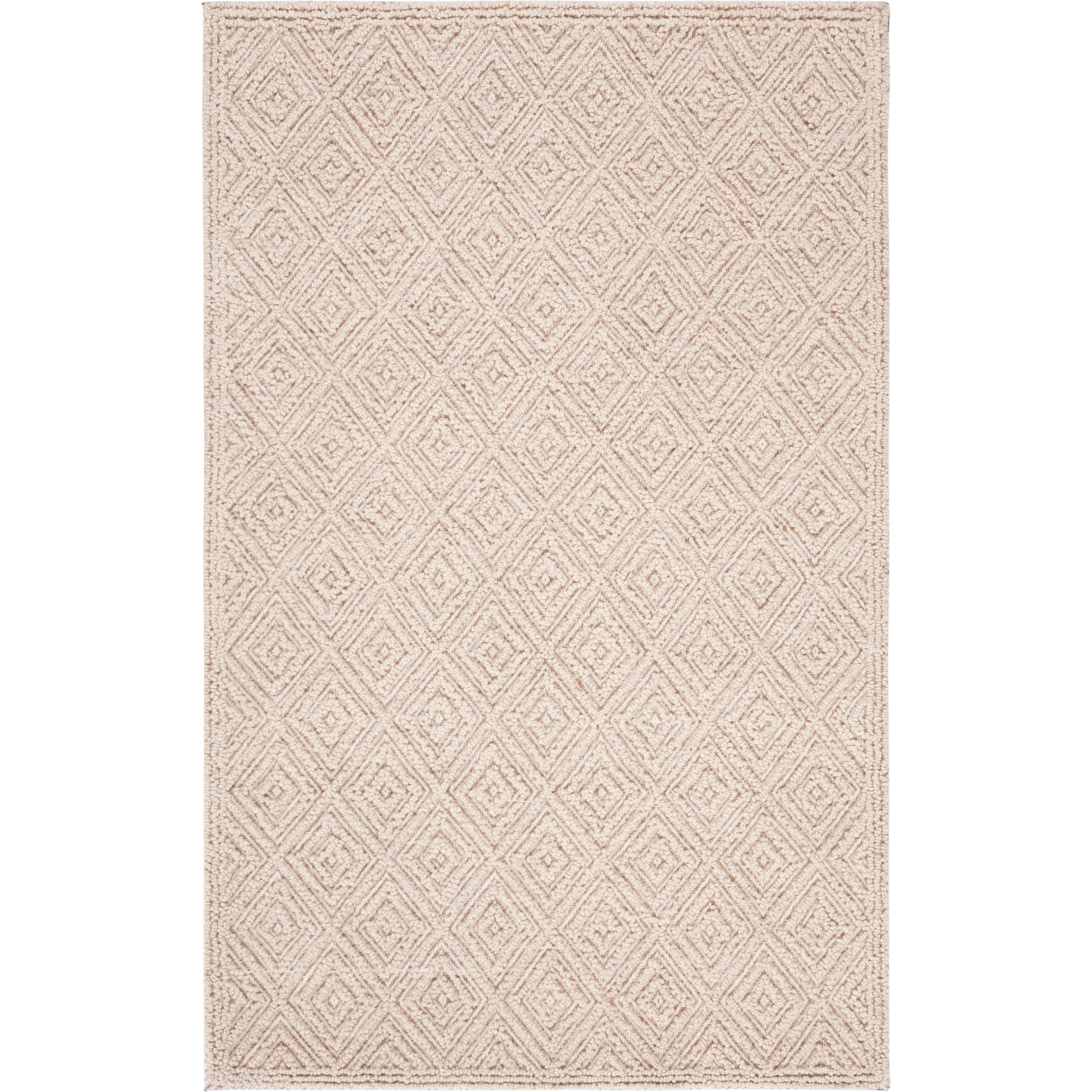 Elevate your living space with the luxurious Trace TRC250B Beige Beige area rug. This exquisite piece features intricate raised patterns and textures that add a touch of elegance to any room decor. The understated color palette complements the all-over looped designs, creating a regal look against the solid colored field.