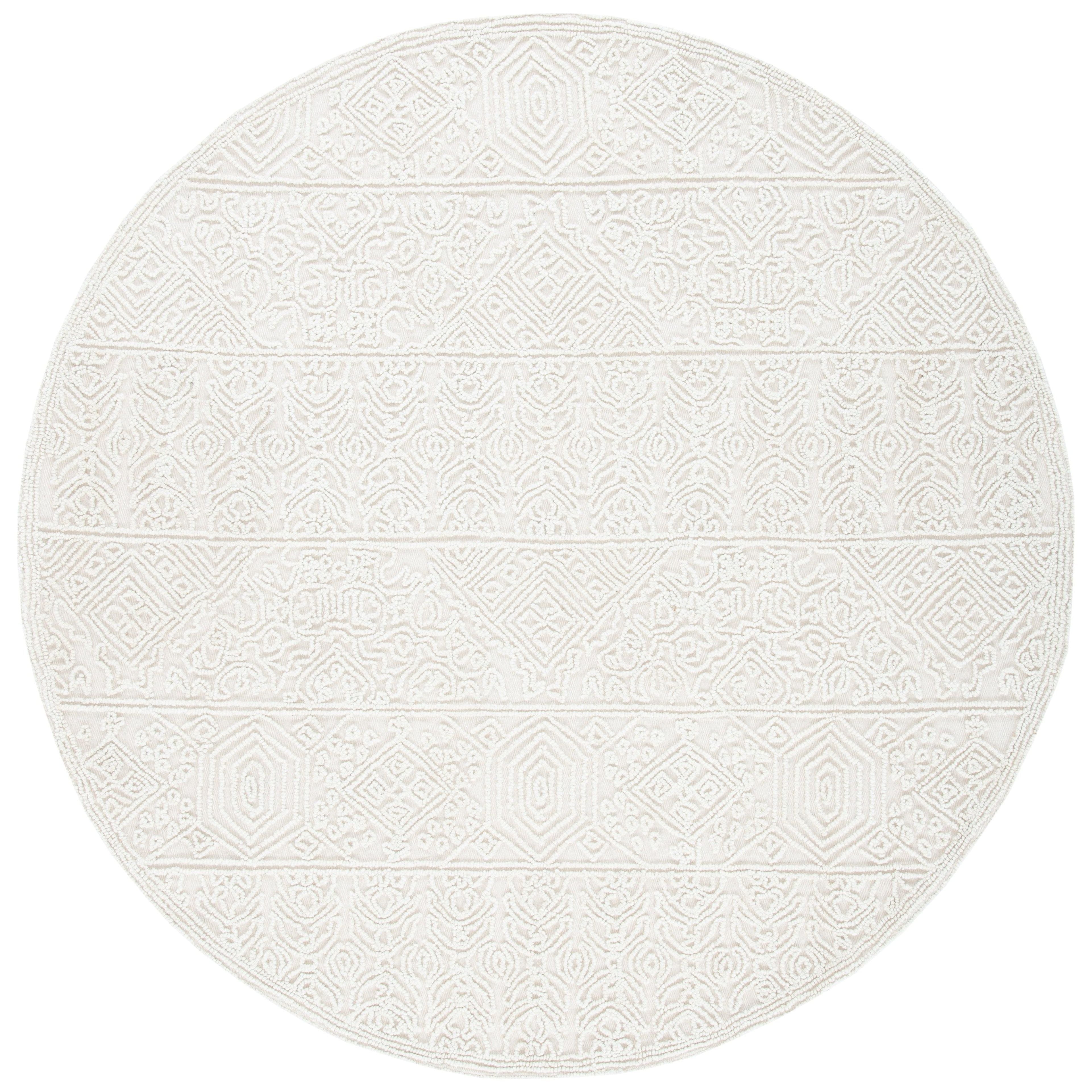 Trace TRC401A area rug, a luxurious addition to elevate your living space. This exquisite rug boasts intricate woven patterns and textures that add a touch of elegance to any room. The understated color palette complements the raised designs, creating a regal look against the solid background. Hand-tufted with pure wool, Trace offers both comfort underfoot and a cozy atmosphere to your home decor, measuring approximately 0.5 inches in thickness.