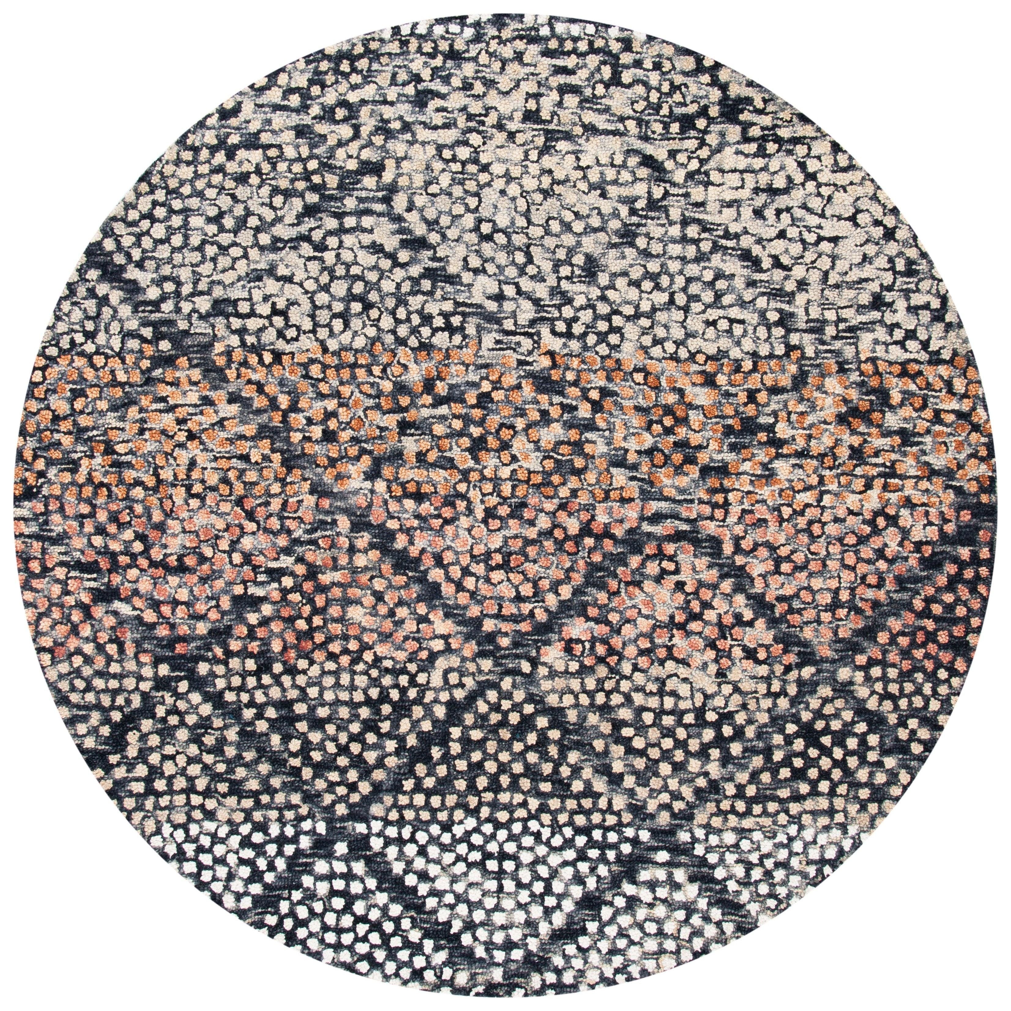 Elevate your living space with the luxurious Trace TRC513N area rug. Delight your senses with its intricate raised patterns and textures that bring a touch of elegance to any room. The understated color palette complements the sophisticated design, featuring looped patterns against a solid background for a regal look. Hand-tufted from pure wool, this rug offers both comfort underfoot and a cozy feel to your home decor, with an approximate thickness of 0.5 inches.