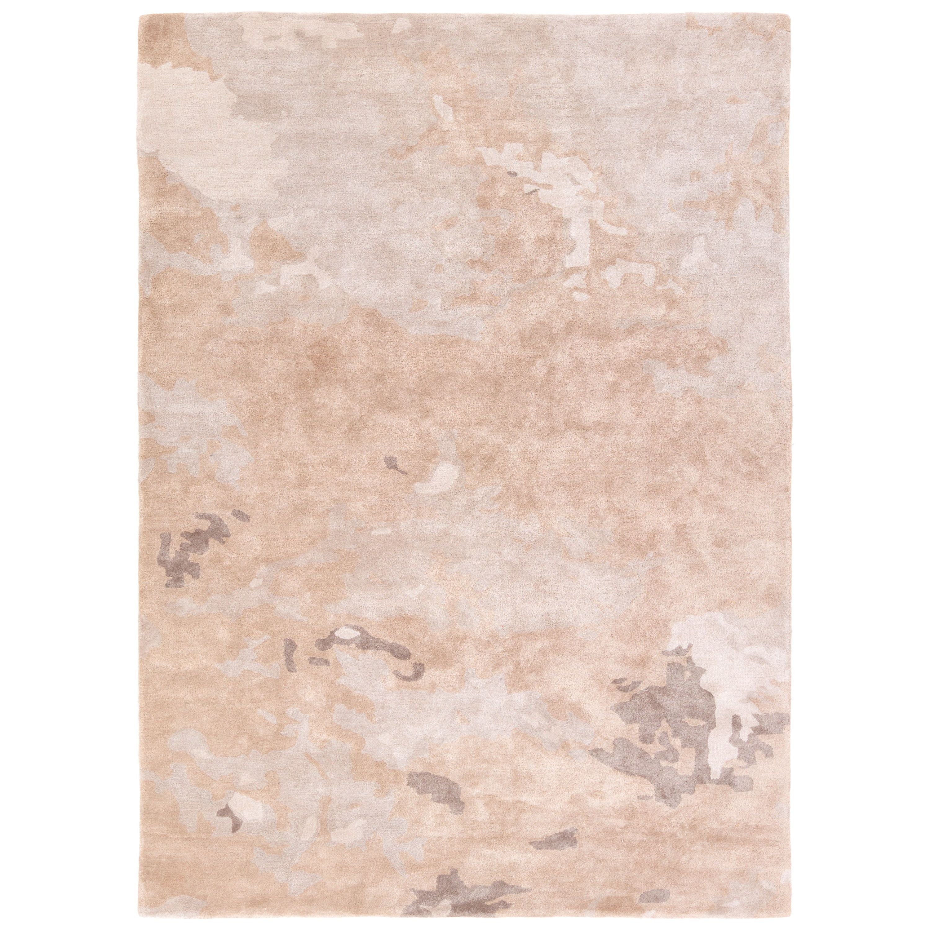 Transcend TRD06 Glacier, a stunning hand-tufted area rug that effortlessly combines luxurious texture with a modern design aesthetic. The abstract pattern of this plush accent features a warm color palette with shades of peach, adding a touch of elegance to any room. Perfect for sleek master bedrooms, the artistically mottled motif creates visual interest and adds a unique flair to your space.