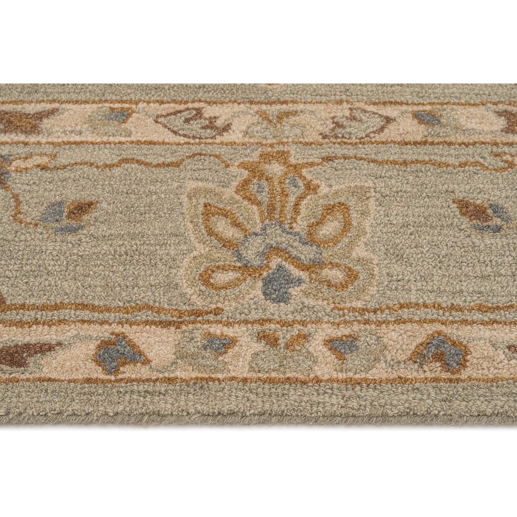 "First off, I love this rug .. the colours and the texture of the rug turned out to be exactly what I was hoping for - a very neutral-looking moss green and ivory background with a few tiny pale blue accents. Love the look!"