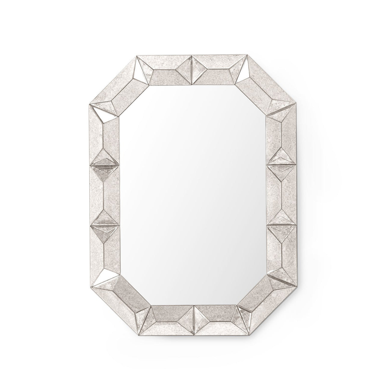 A glamorous accent glittering with multifaceted glass, the Romano Wall Mirror adorns your space like a glamorous piece of jewelry. Its frame consists of gemlike geometry, featuring angled planes of mirrored glass. Each one is expertly cut, beveled, and finished with an antique look that provides smokey ambiance and vintage cool. Its bold, three-dimensional border acts as a dramatic focal point in any room. Install it vertically or horizontally above a desk, console, sofa, or bedroom dresser. You can even pair two to create a striking scene at a large bathroom vanity. As with most of Villa & House’s pieces, you’re sure to hear, “Where did you get that?!”