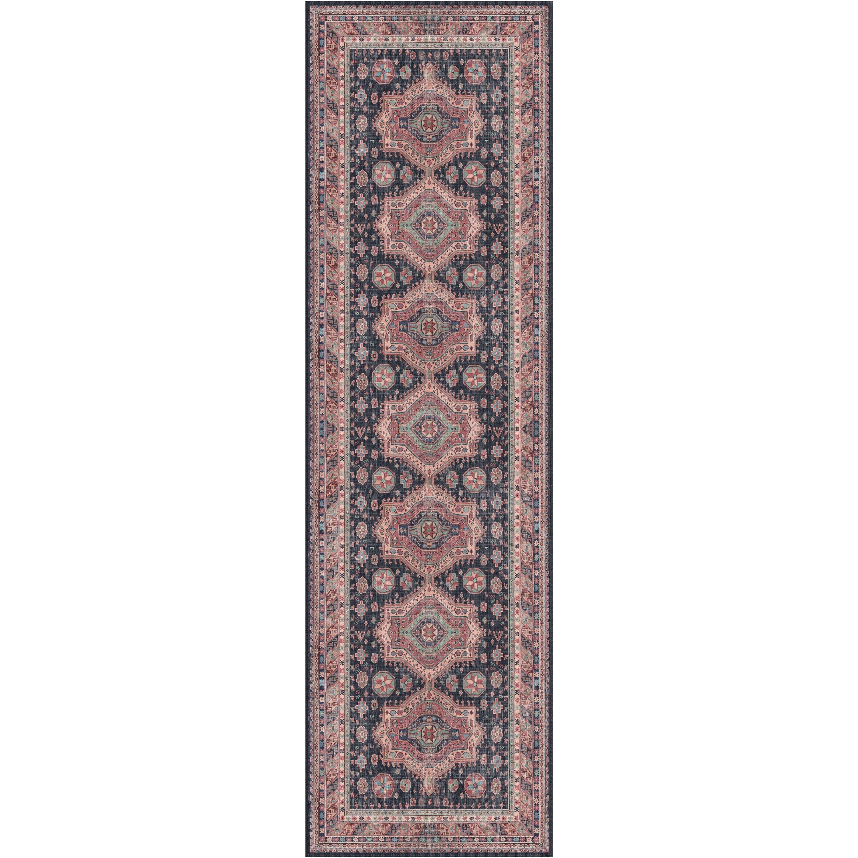Vintage Home VNH03 Navy rug, a captivating addition to your home decor. Elevate your space with this vintage-inspired piece from the Vintage Home Collection. Featuring an intricate medallion pattern in rich navy, light blue, beige, and pink tones, this rug exudes timeless elegance. The tasteful distressing adds a touch of old-world charm, making it a perfect focal point for any room.