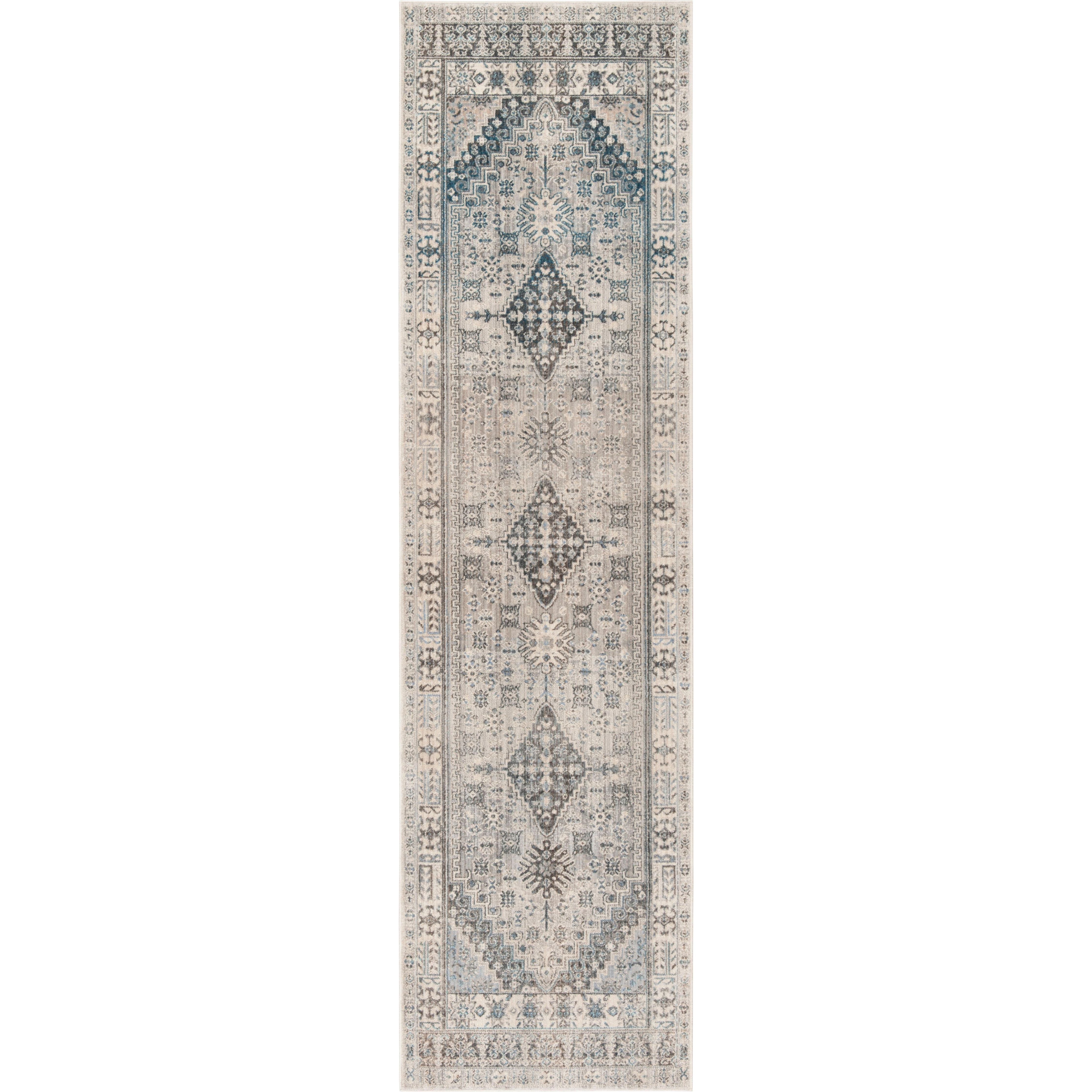 timeless elegance of the Vintage Persian VTP472F Grey Blue rug from our exclusive collection. Crafted with care, this rug exudes old-world charm while seamlessly blending with today's modern home decor trends. The silky enhanced polyester fibers woven into intricate Persian designs create a timeworn aesthetic reminiscent of a cherished family heirloom. Available in various designs, colors, and sizes, you can effortlessly find the perfect match for any room in your stylish home or business space. With an approximate thickness of 0.375 inches, this rug adds both comfort and style to your space.