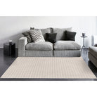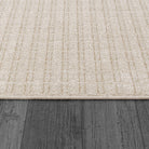 Vuna 14954 Ivory Beige rug, a perfect blend of modern sophistication and timeless elegance for your living space. Featuring striking striped and chevron patterns, this machine-made rug from Turkey is crafted from durable polyester with a handmade-like construction, adding a touch of luxury at an affordable price. The neutral tones of ivory, cream, and grey create a versatile color palette that seamlessly complements any decor style.