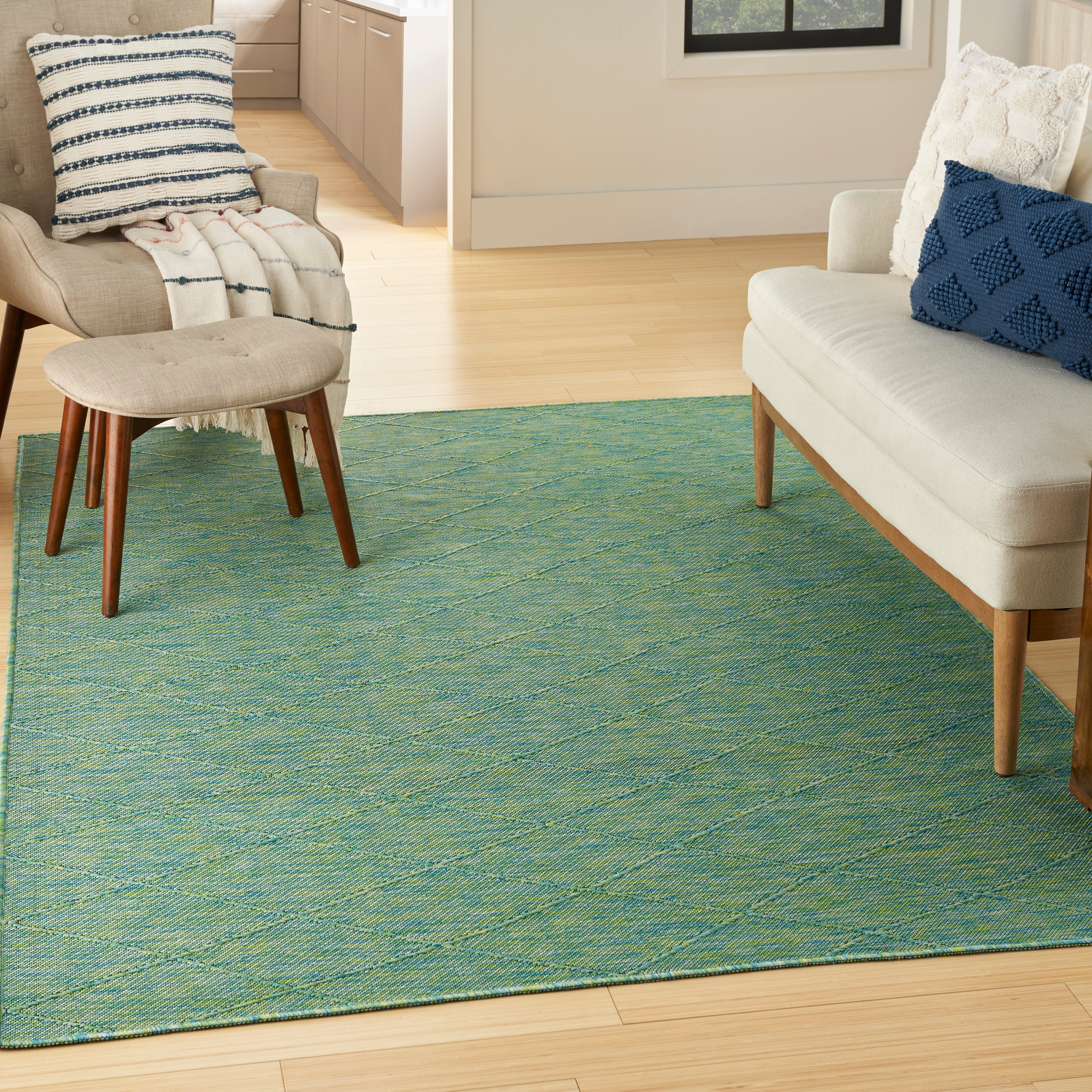 Experience the perfect blend of sophistication and practicality with the Washable Solutions WSL01 Blue Green outdoor rug. This versatile rug from the Washable Solutions Collection is designed to effortlessly elevate any living space, whether indoors or outdoors. Crafted from durable polypropylene, these machine-made rugs are soft to the touch, easy to clean, and do not shed. The non-skid backing adds stability and protects your floors. When it's time for a refresh, simply toss these rugs in the washing machine and air dry them. Please note that rugs sized 8 x 10 and larger require a commercial washer for cleaning.