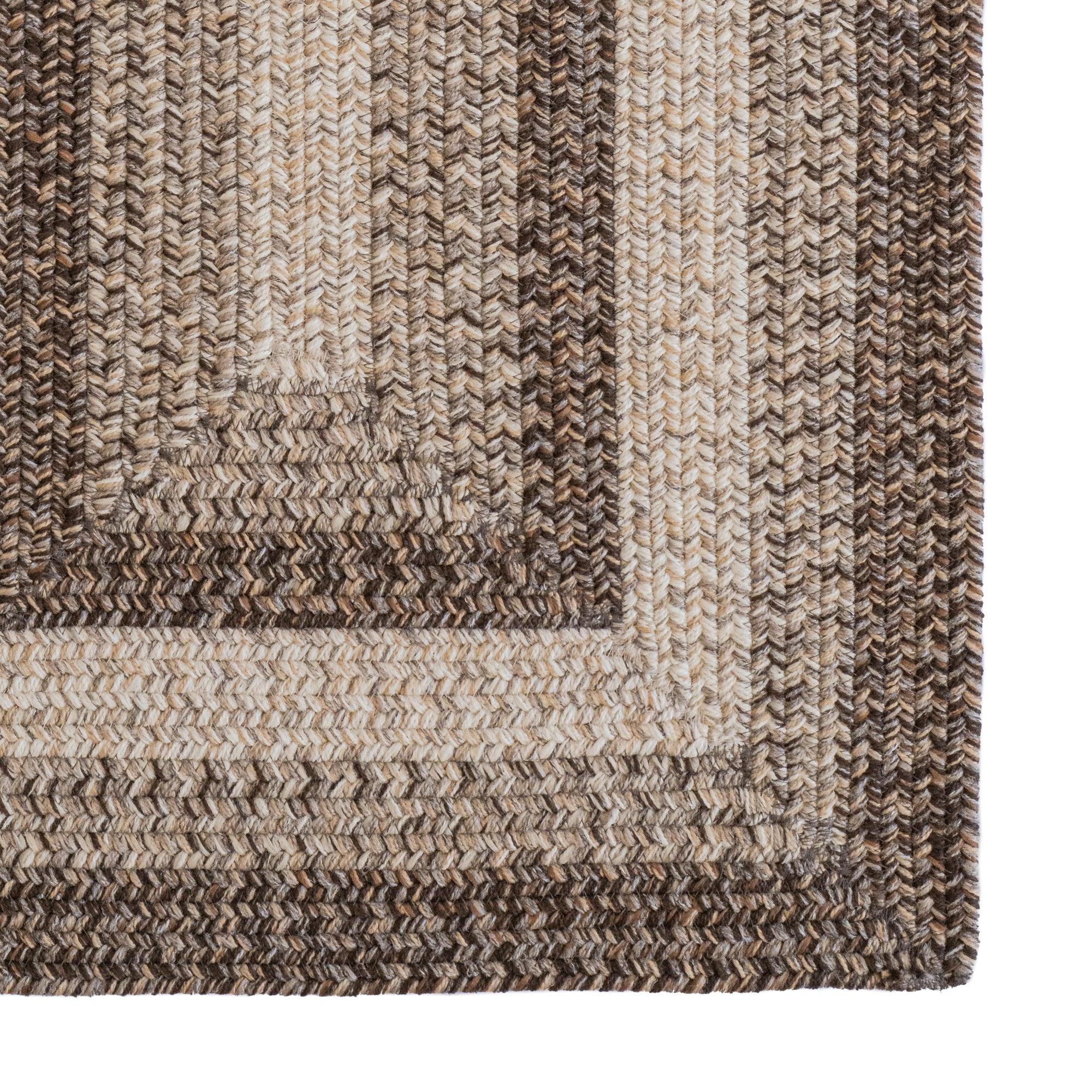Winthrop Brown rug from our exclusive collection, inspired by the traditional banded braid construction popular in Colonial American culture. The wide bands of variegated colors create a captivating pattern that adds a touch of historic charm to any space. Our designers have expertly modernized this classic technique, resulting in a versatile and visually appealing rug that complements various decor styles.