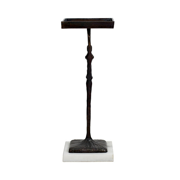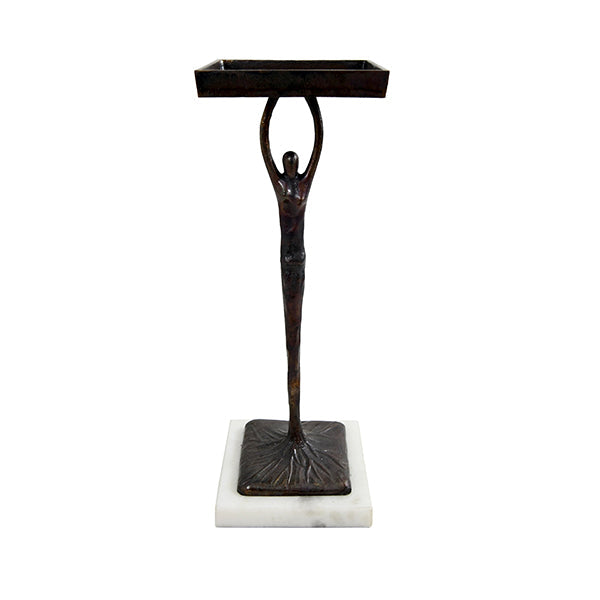 For collectors and curators alike, we give you Alexa – functional artwork for your home and every bit the conversation starter you've been searching for. Our petite drinks table features an elongated, sculptural figure with black finish. Outstretched arms present the fixed tray top, while the base is rooted to a luminous white marble pedestal. Gallery ready!